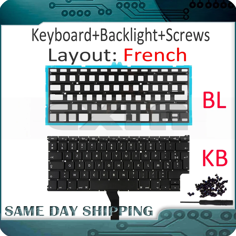 Новый ноутбук A1369, Французская клавиатура для Apple Macbook Air 13 дюймов, A1369 A1466, Французская клавиатура AZERTY + Подсветка 2011-2017 года