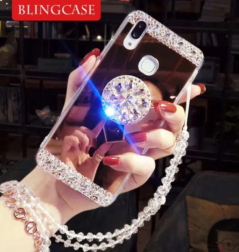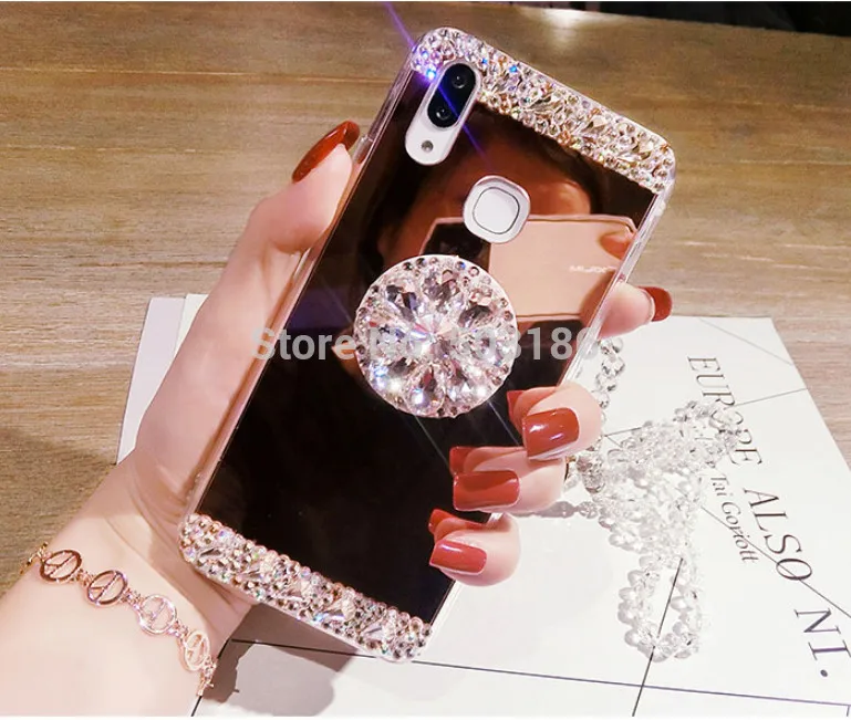 Зеркальный чехол со стразами для Huawei Honor 8X 9 10 lite 7C 7X 7A 8A Y5 Y6 Y7 Prime Y9 2018 2019 Play