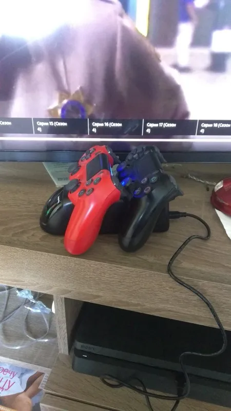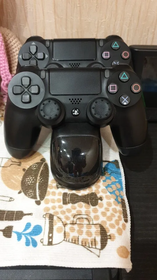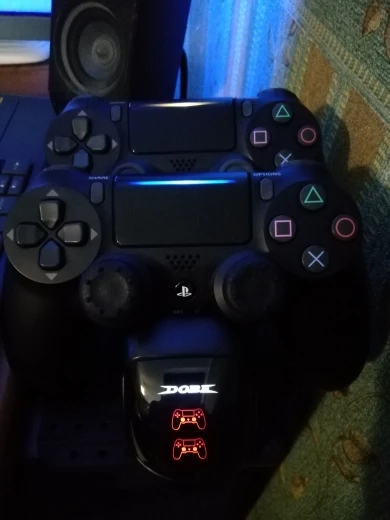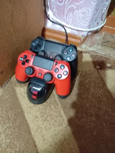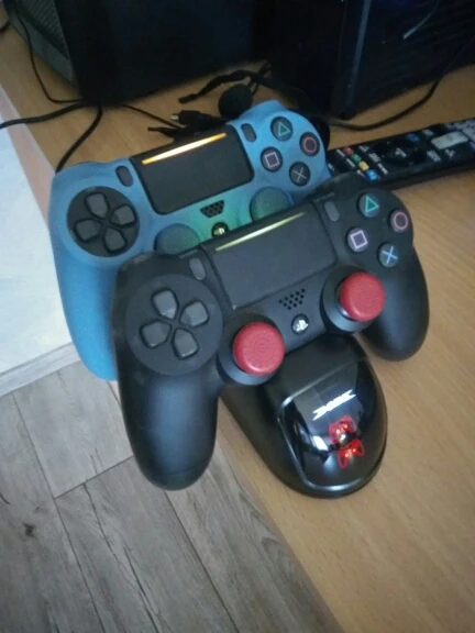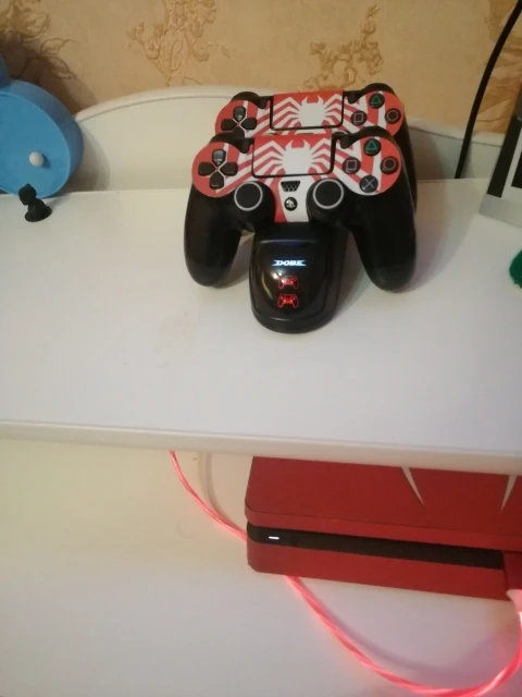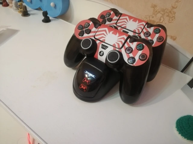 Отличная зарядка, быстрая доставка и резинки на стики с наклейкой очень кстати. Джойстики ставятся на зарядное устройство удобней чем на оригинальную станцию от Sony, контакты оригинальной зарядки ребенок ушатал меньше чем за год. На этой зарядке должны подольше прослужить.