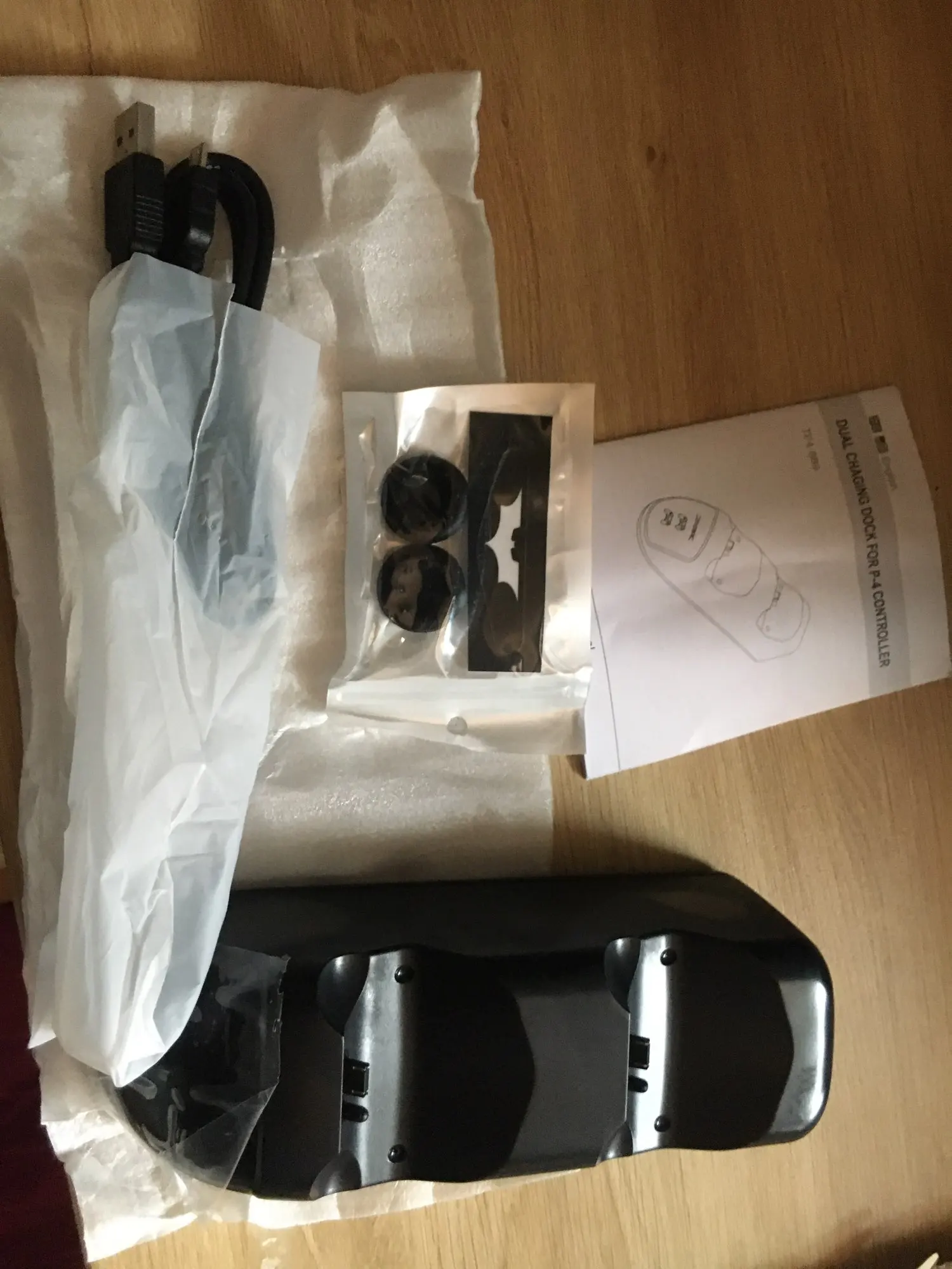 Сегодня получил данный товар, зарядка прекрасно работает, понравилось что она не скользит за счёт резиновых насадок внизу, плюс продавец отправил в подарок накладки на стики для геймпада и наклейку, большое спасибо, продавец красавчик.