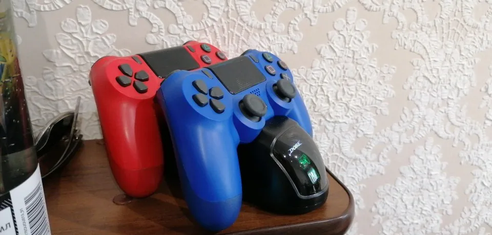Сразу скажу, вещь крутая и надо брать. Все джойстики в одном месте и заодно заряжаются, удобно). Выглядит симпатично и добротно, снизу резиновые ножки не дают подставке скользить. Джойстики садятся туго, даже если подставку с ними перевернуть то не упадут (можно отнести это к плюсам). При зарядке джоя соответствующий индикатор меняется с зелёного на красный. В общем, доволен.Если что-то сломается, то дополню отзыв. Посылка пришла за две недели, отслеживалась. Не знаю кому эта информацию нужна, но смотрю все пишут, будто им это важнее самого товара.