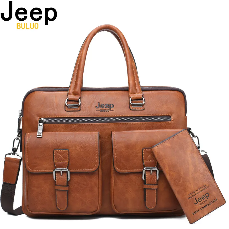 Мужской портфель для ноутбука 13,3 д. jeep buluo, комплект, оранжевый портфель и кошелек, деловая сумка на плечевом ремне, кожаная сумка для офиса, все сезоны, 2019