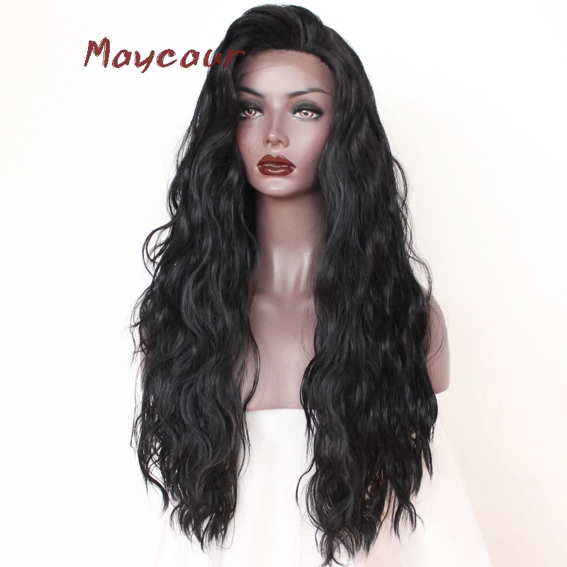 Maycaur длинные волнистые синтетические кружевные передние парики свободная часть черный блонд розовый цвет длинные натуральные волосы парики для женщин