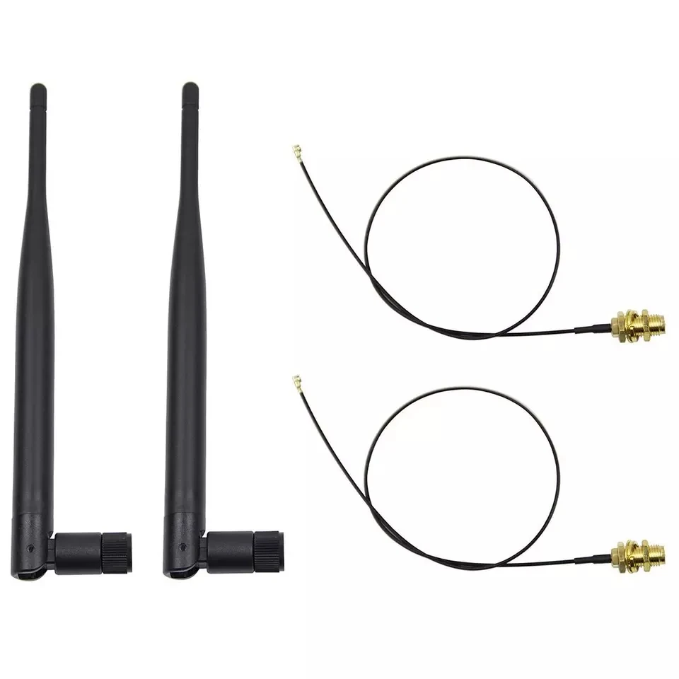 2 x 6dBi 2.4GHz 5GHz Dual Band WiFi RP-SMA Antenna + 2 x 35cm U.fl IPEX Cable