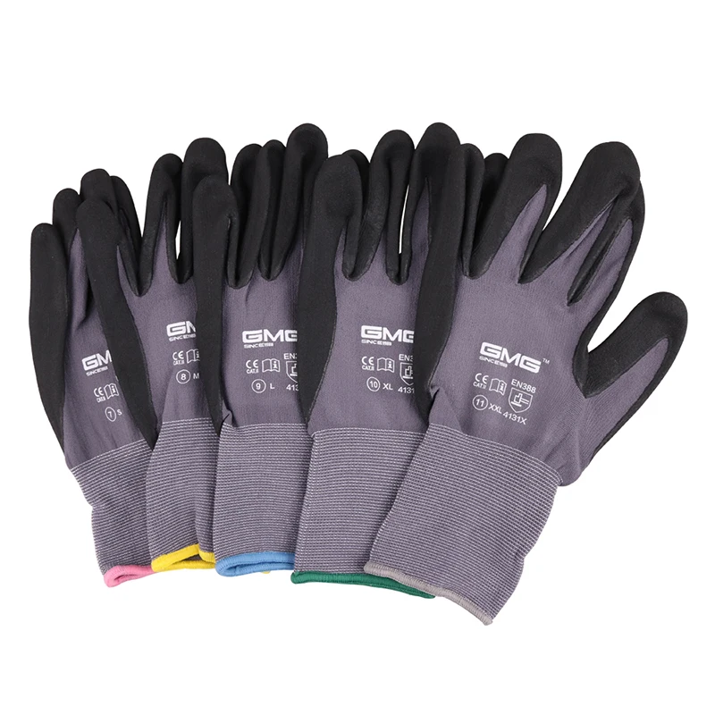 Защитные рабочие перчатки GMG, 3 пары, перчатки из нейлона, спандекса, Сертифицированные CE, EN388, перчатки из пенопласта, нитриловые защитные рабочие перчатки для мужчин