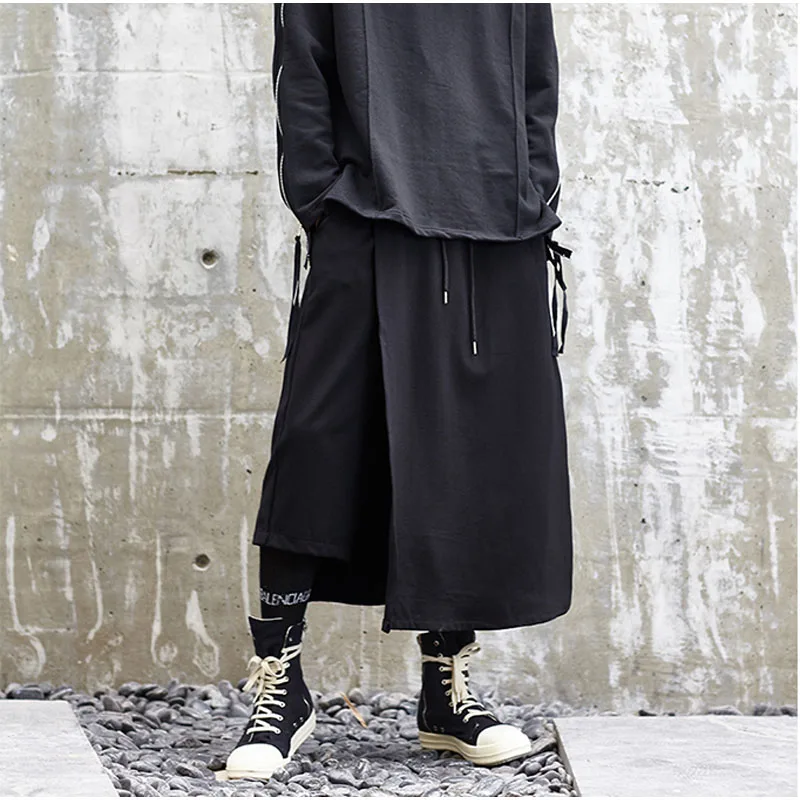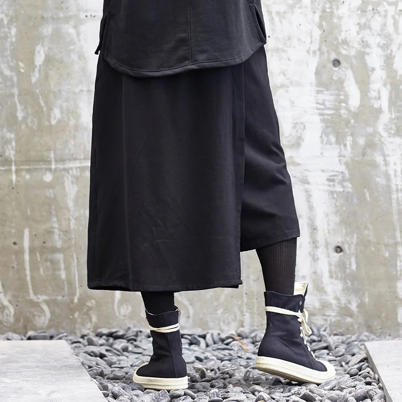 Брюки-кимоно мужскиеженские с широкими штанинами, модные повседневные штаны-султанки в японском стиле, свободные брюки-султанки в стиле хип-хоп, готика, черные