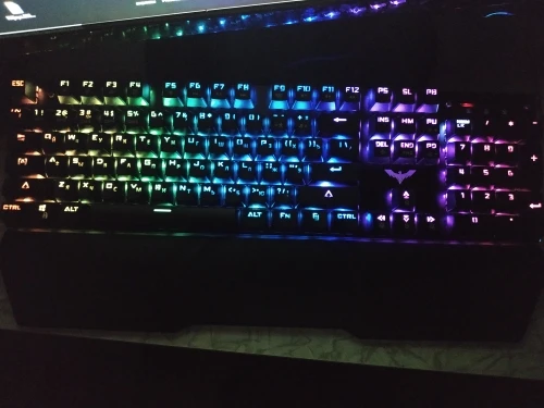 Всё замечательно, клавиатура радует пальцы и глаз. В общем всё отлично. Доставка курьером до квартиры. Свитчи синие, думал будут громко кликать. Не со звуком всё в норме, нажим лёгкий. На работе тоже механика древняя PS/2, свитчи гораздо с большим усилием. Единственное, что немного огорчает, кириллица. Символы оставляют желать лучшего. Нужно было брать только с латиницей. Конечно не достаточно в слепую знаю раскладку, но вот и был бы шанс поднатореть в опыте набирать текст в слепую. Ну а в общем клавиатура достаточно приличная. Цветовых эффектов, с лихвой. Огромное спасибо производителям, ну и соответственно продавцу, рекомендую.