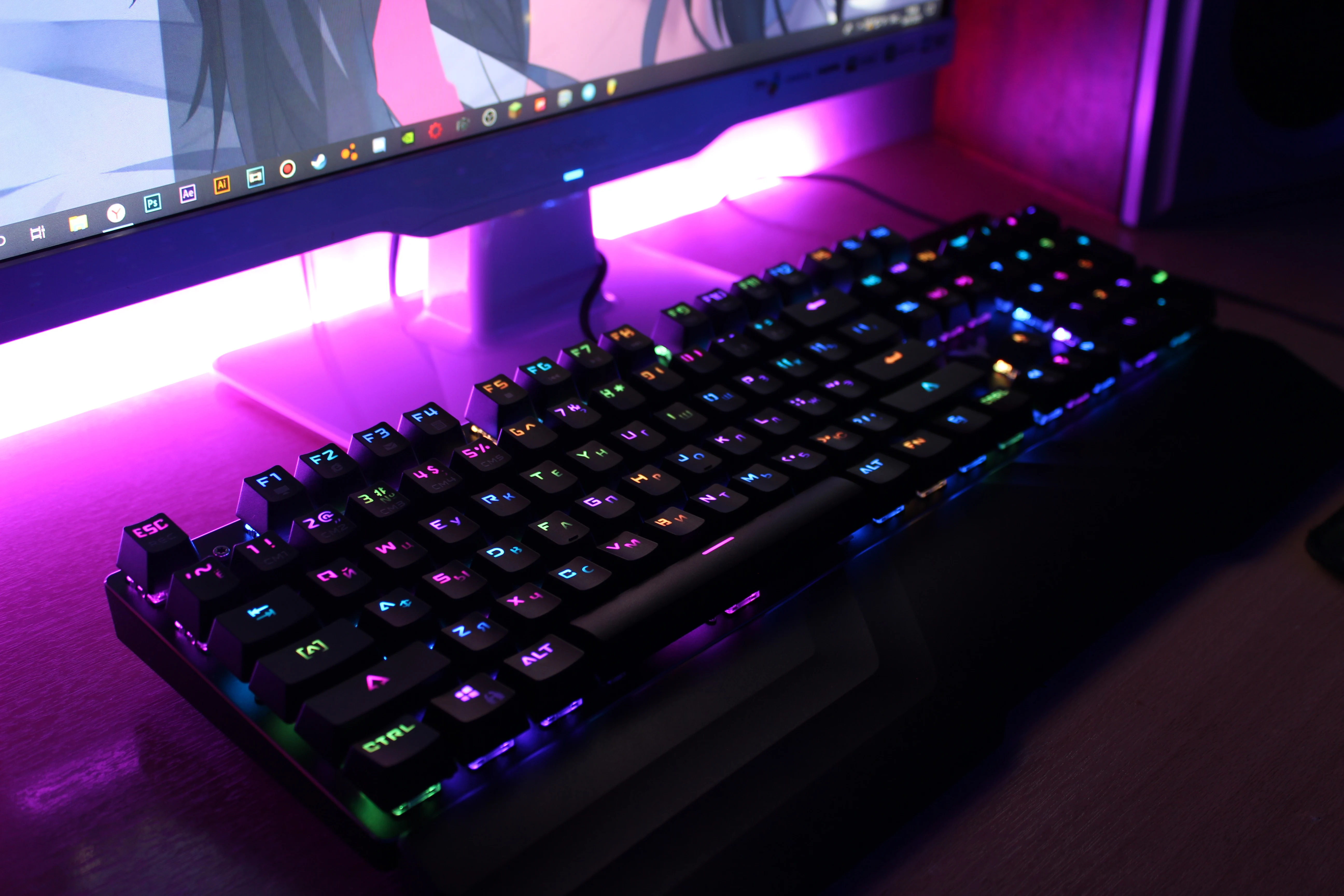 Доставка из рф быстрая, клавиатура нормальная, звук клавиш очень громкий и лязгающий, у более дорогих клавиатур он более глухой и тихий, но в принципе нормально. Подсветка не ргб, но настраивается достаточно удобно и режимов много, в общем своих денег стоит.