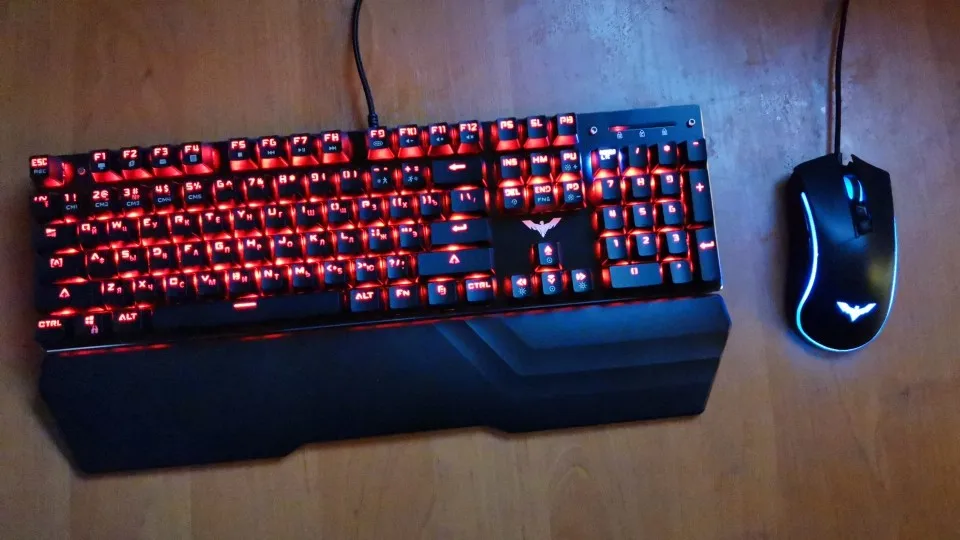 отличная клава, но для меня свитчи туговаты, брал на красный только потому что она тише, все кому не мешает цоканье-берите на синих. мышка не привычно большая, до этого всю жизнь на х7 ф5. доставка 2 дня в спб. в целом очень доволен