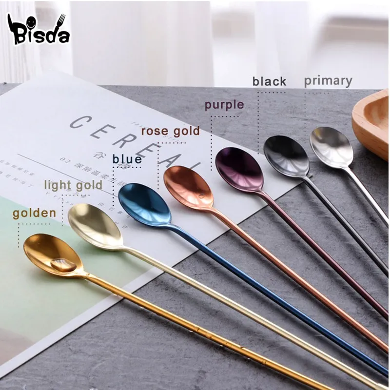 8 цветов, зеркальные ложки из нержавеющей стали 201, золотистые столовые приборы, ложка для перемешивания, зеркальные инструменты