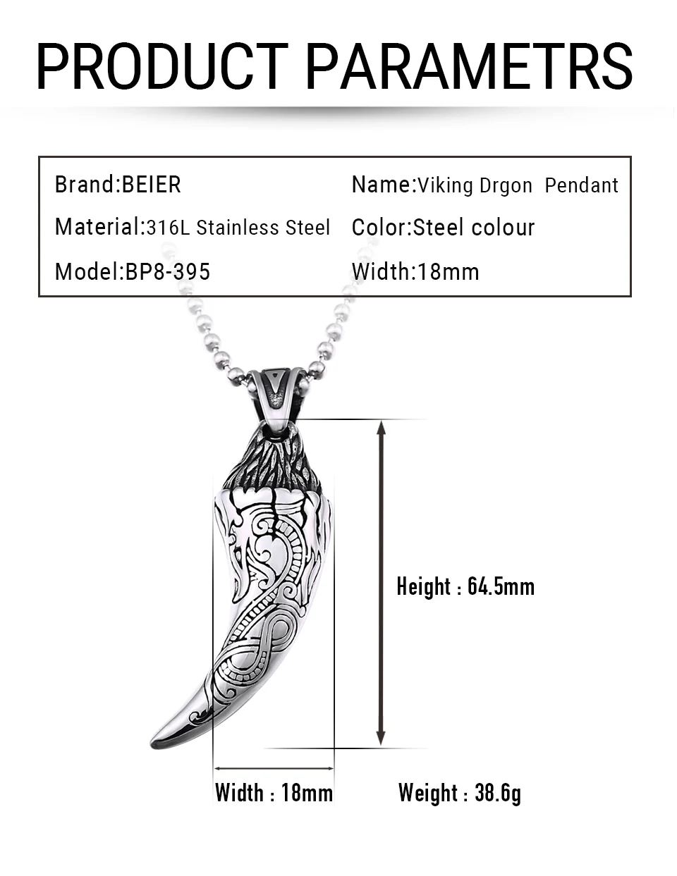 Мужской чокер BEIER, винтажное ожерелье с подвеской в виде зуба дракона, викингов, подарочное BP8-395