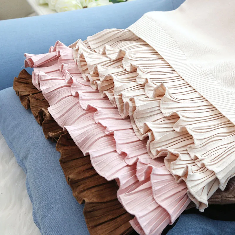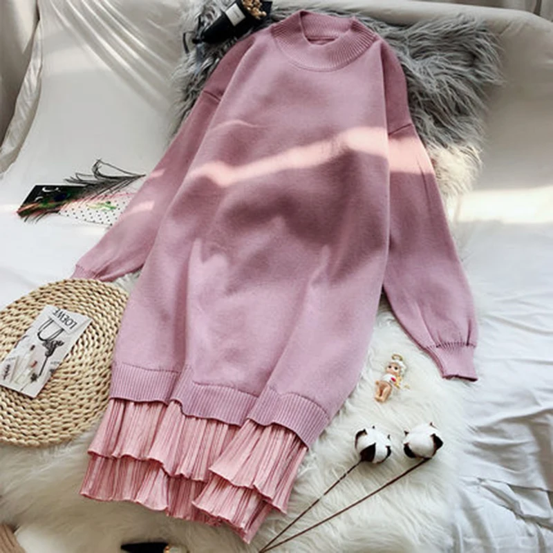 Свитер женский трикотажный, с круглым вырезом и длинными рукавами, с оборками