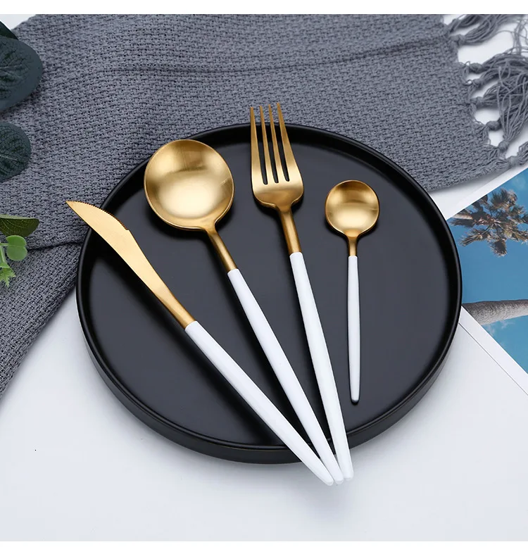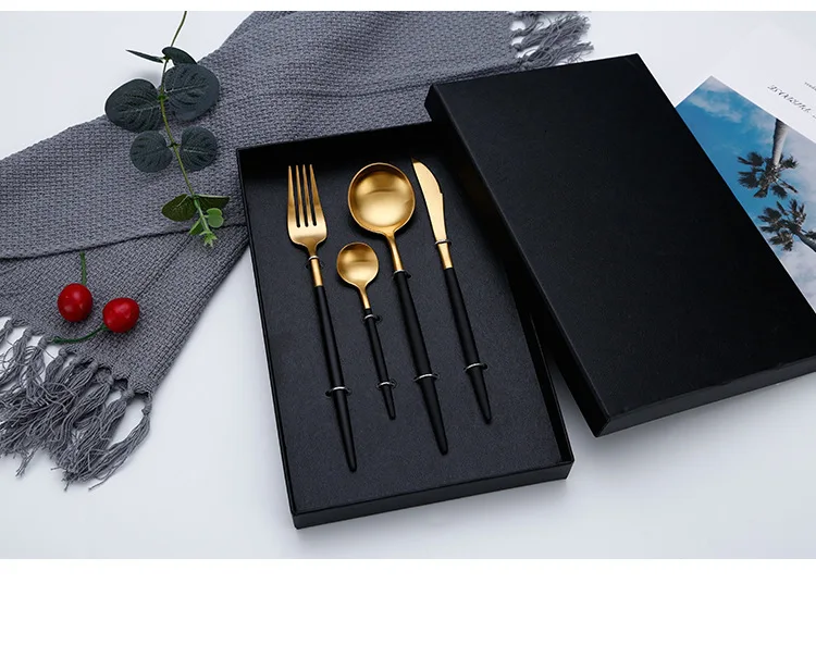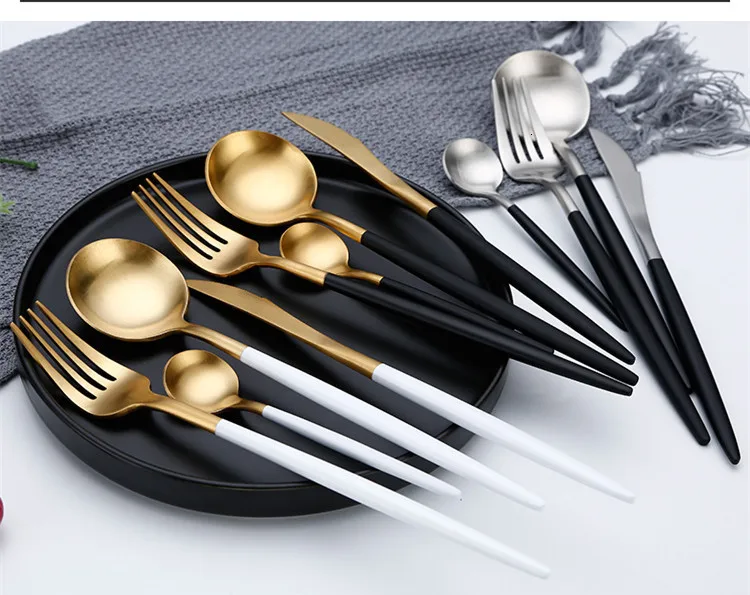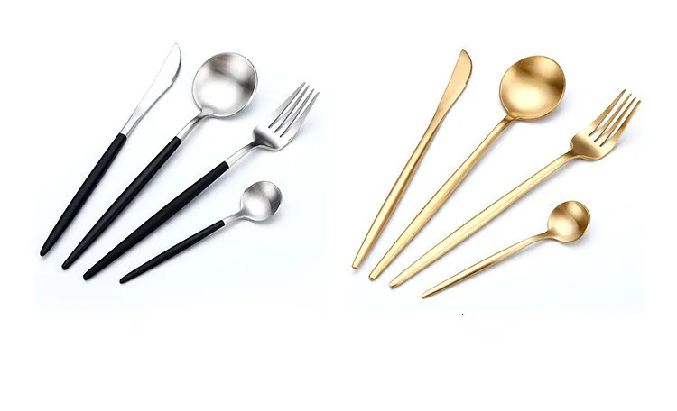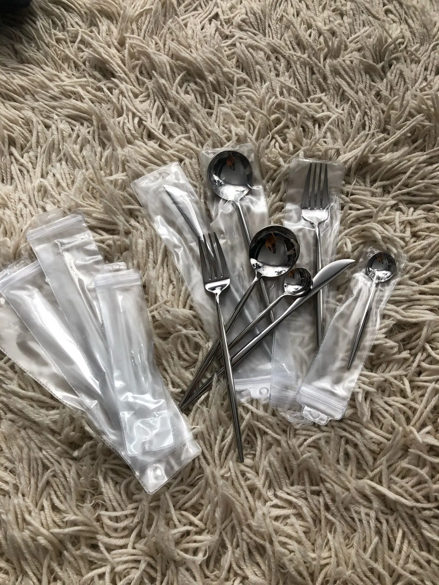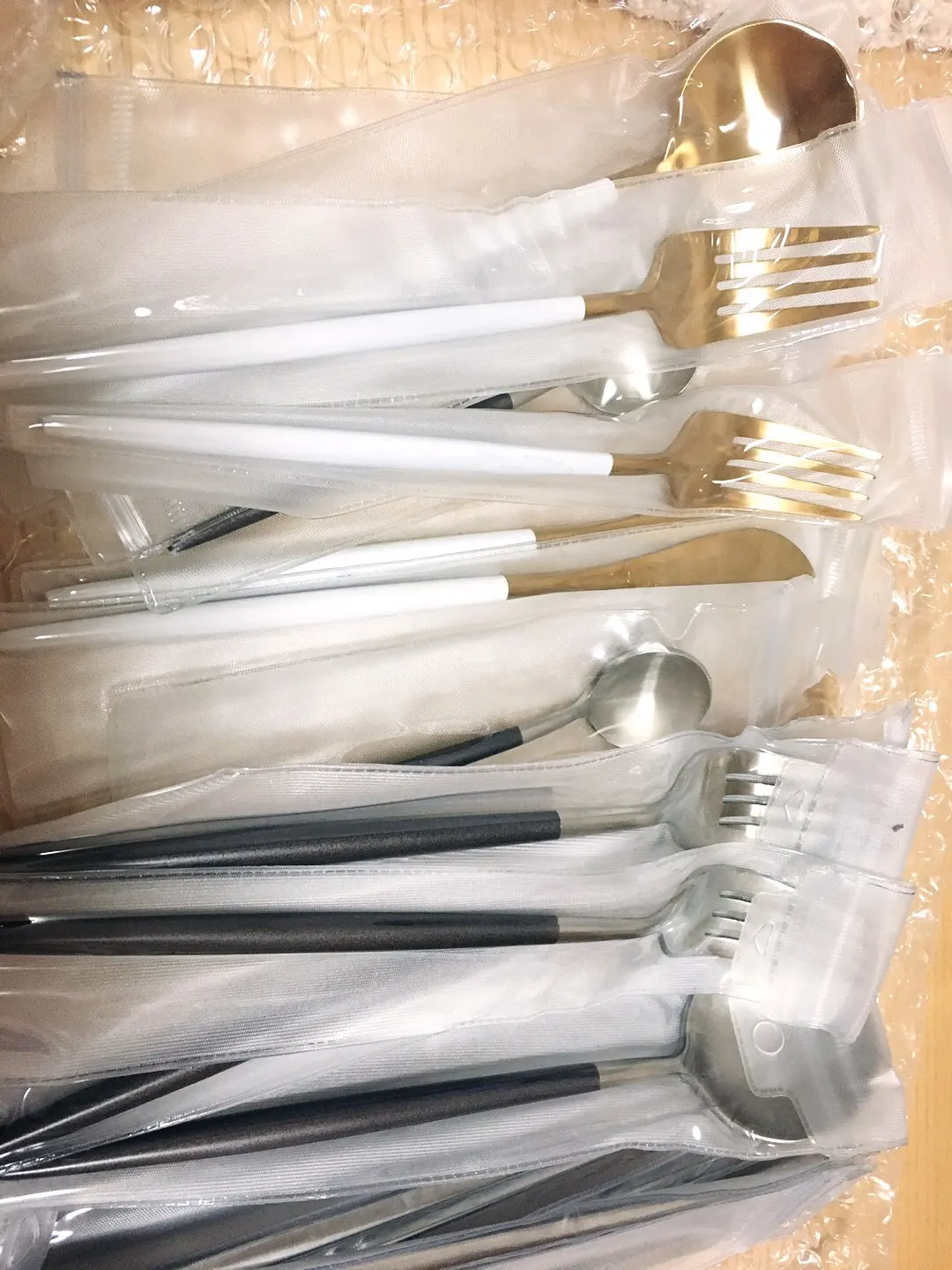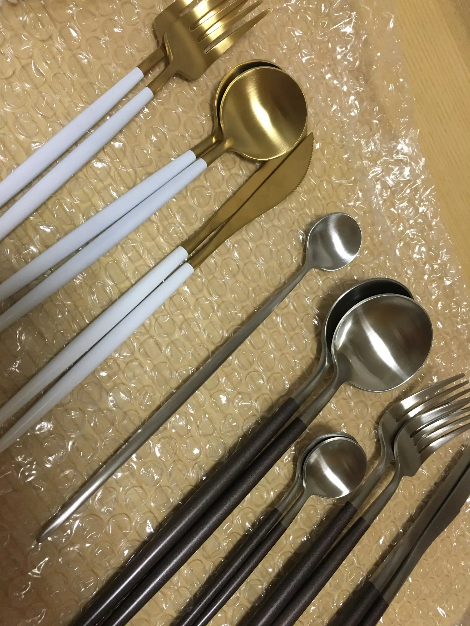 Чёрные и стальные заказала, пришли очень быстро, за 4 дня. Приборы тяжелые, приятно держать в руке. Переживала , что ложкой неудобно будет кушать, но нет, всё удобно, вся семья опробовала и теперь закажу весь комплект