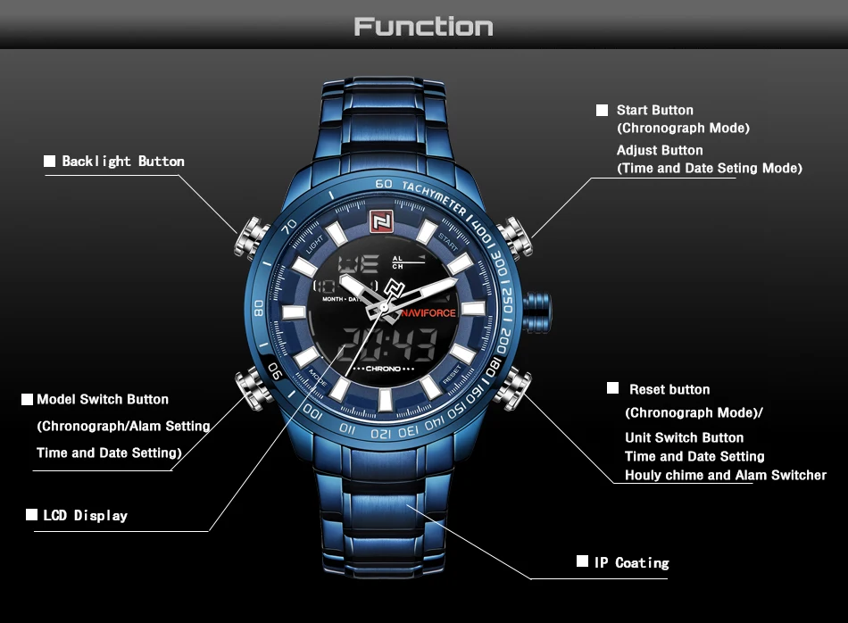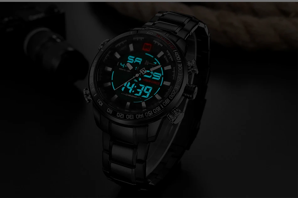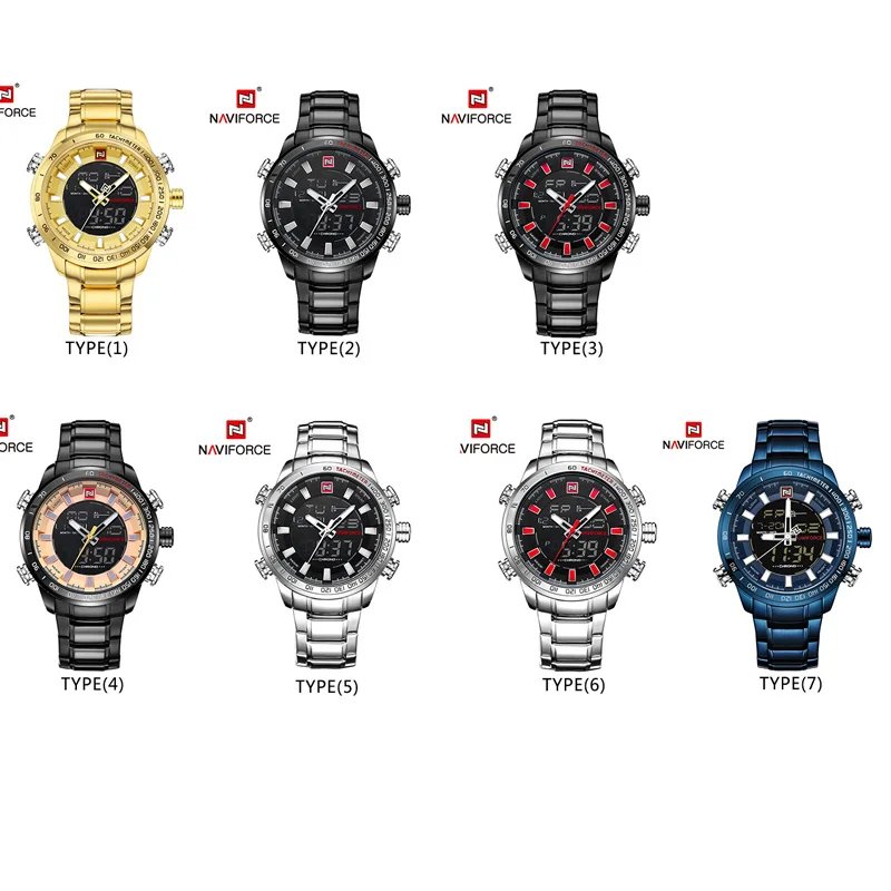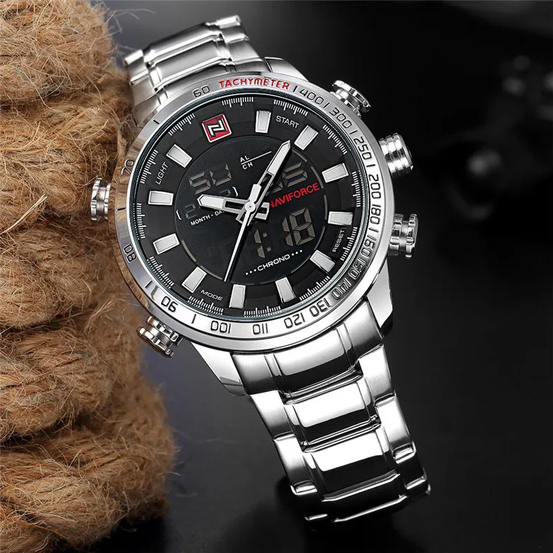 Часы NAVIFORCE мужские наручные цифровые аналоговые, брендовые Роскошные спортивные в стиле милитари, из нержавеющей стали, 9093