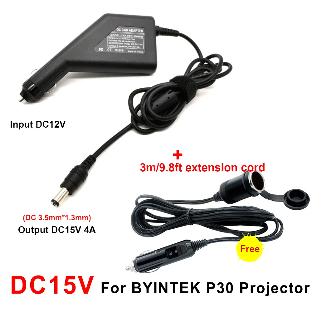 Автомобильный адаптер питания BYINTEK 12V 15V 19V для проектора, 19V для U70 R15 R19 U50 , 12V для P12 P20 U30, 15V для P30