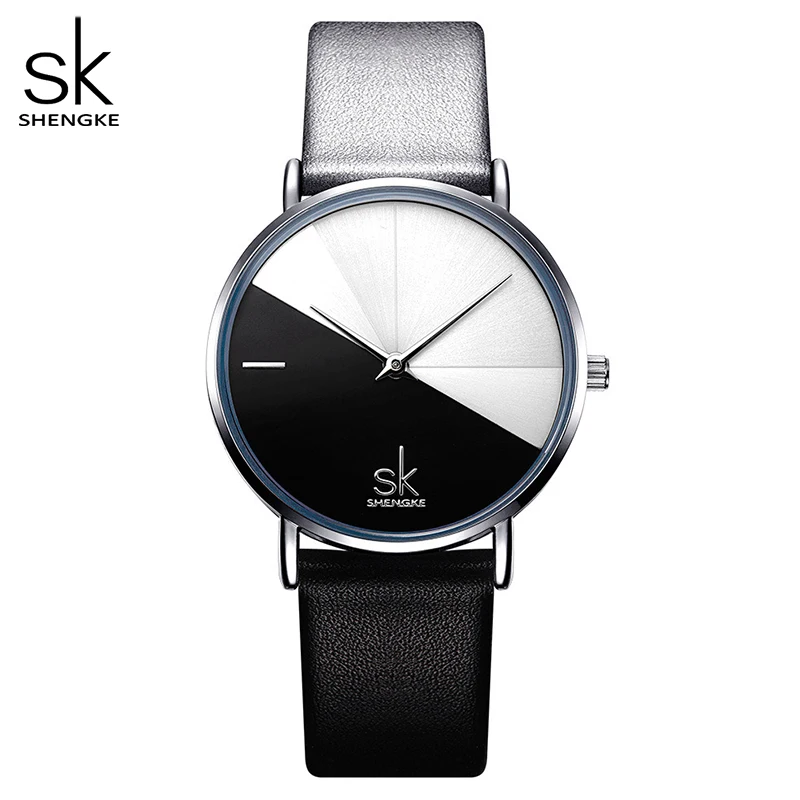 Часы Shengke женские кварцевые, повседневные наручные, с кожаным ремешком