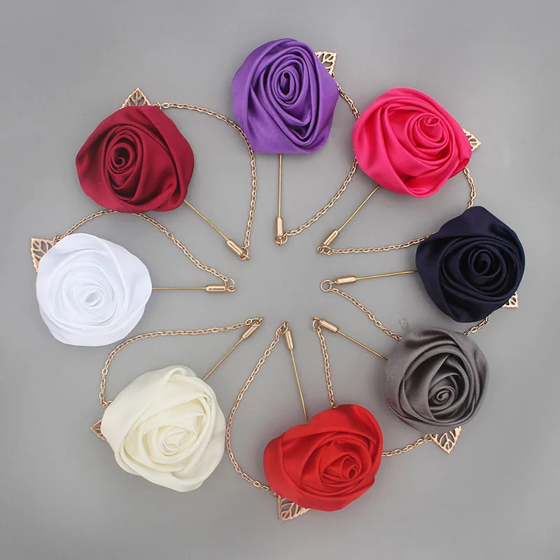Бутоньерка Роза Золотая свадебная с бутоньеркой, бутоньерка, листья, брошь для жениха, шелковая лента