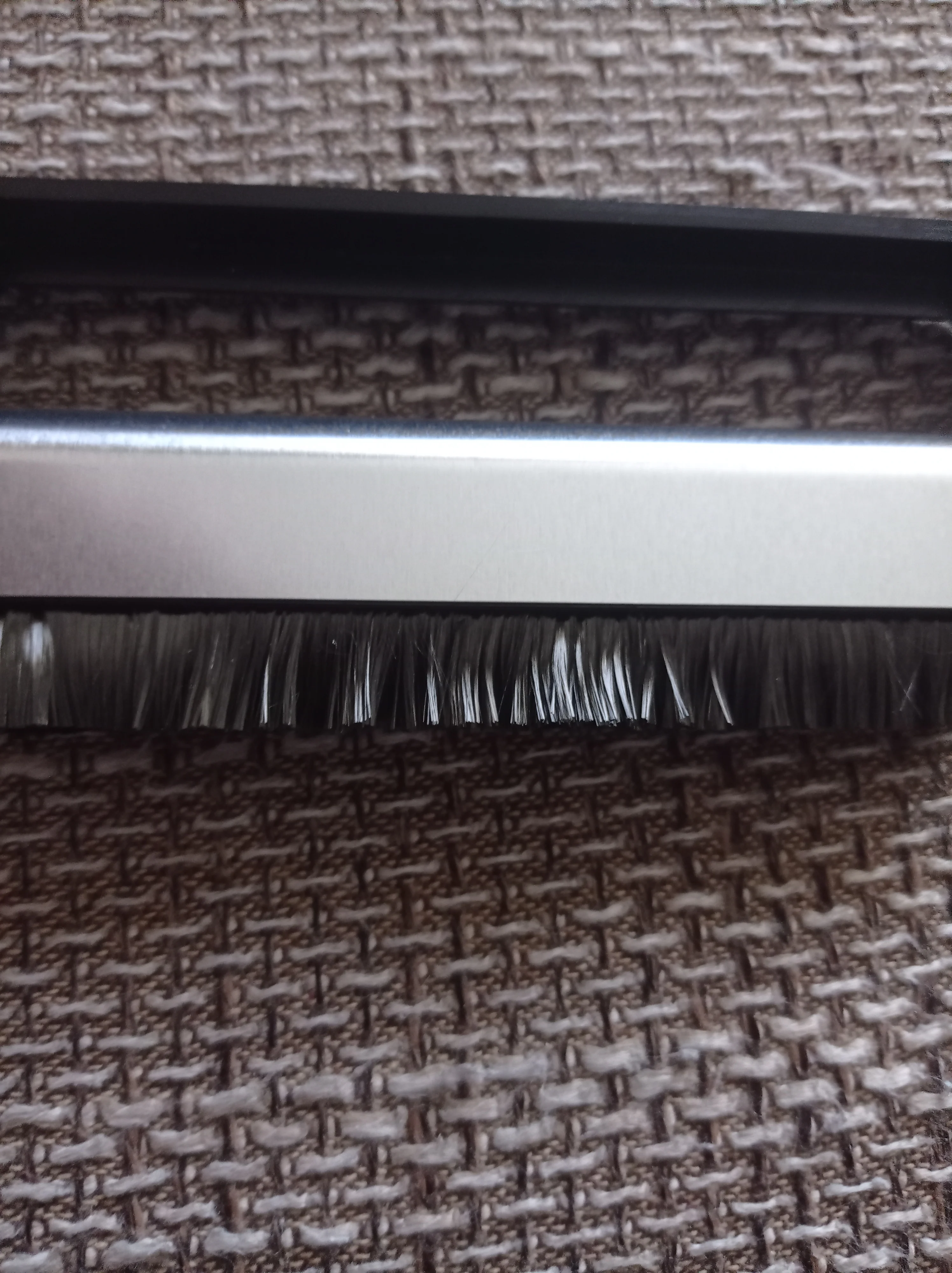 Щетка марки Opula. Нашел в интернете различные их средства по очистке винила и других поверхностей вроде экранов, оптики и т.д. Просто хочу сказать, что Opula - не пустой звук, а компания вполне себе серьезная, просто не так известная. Сравнил ее со щеткой Pro-Ject. Opula немного крупнее по высоте, щетинки у нее длиннее, что несомненно плюс. Щетина данной щетки более жесткая. Однако пластинки она не поцарапала, треска после нее не слышно. Могу уверенно сказать, щетка хорошая. Стоит в несколько раз дешевле щеток от различных виниловых брендов. Рекомендую ее и данного продавца.