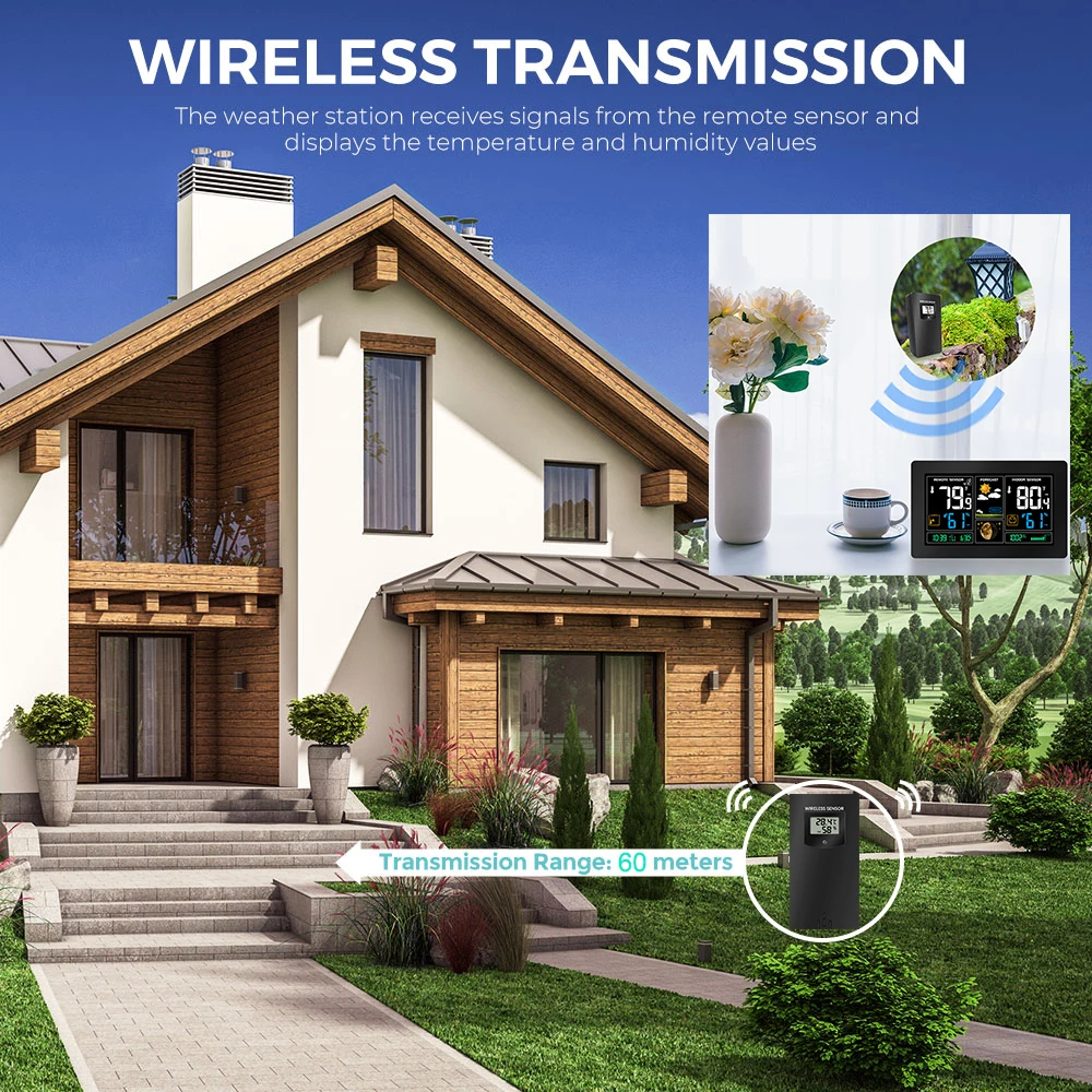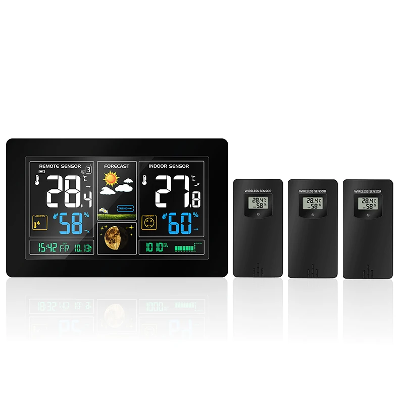 3 наружных датчика Беспроводная метеостанция цветной ЖК-дисплей Температура Влажность