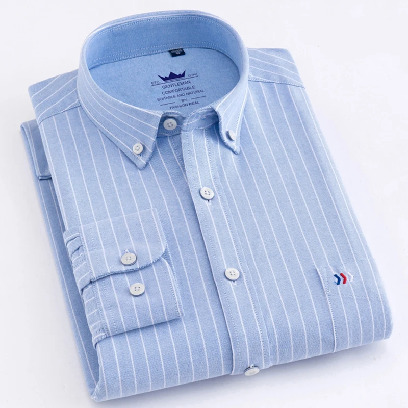 Мужская рубашка с длинным рукавом, Повседневная приталенная рубашка из 2021 хлопка, в полоску, в стиле Оксфорд, Размеры S 6XL, 100%