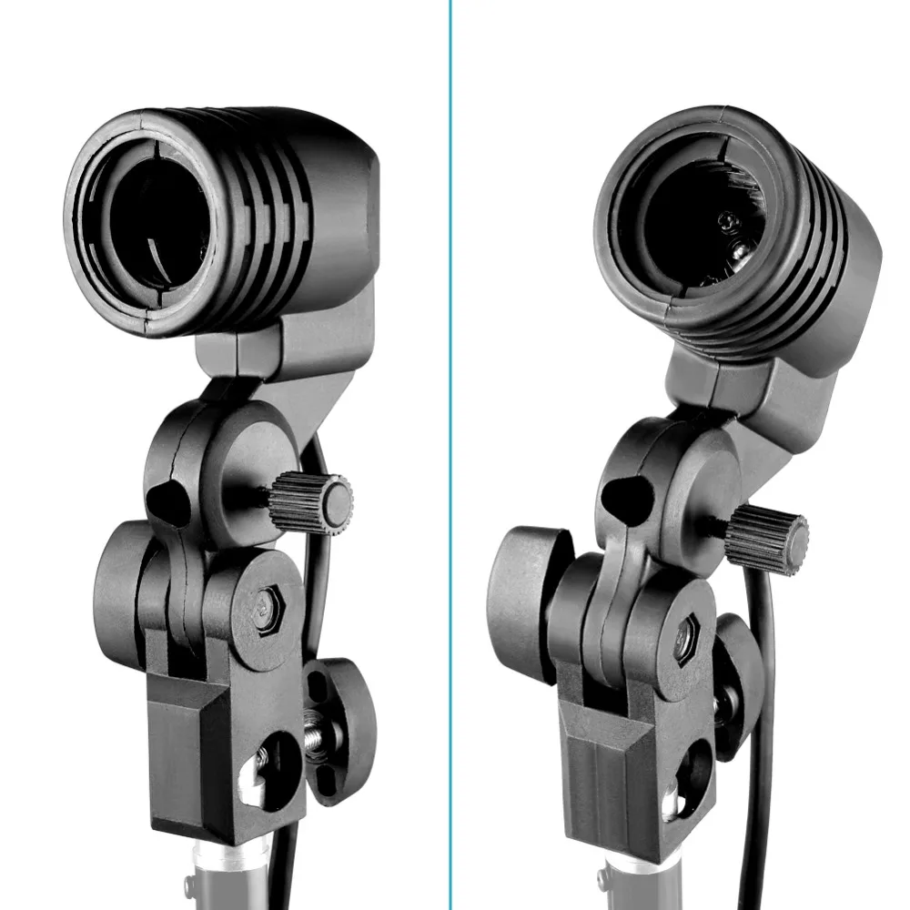 Вставьте люминесцентную спиральную лампу и зонтик и отрегулируйте крепление, чтобы он находился под оптимальным углом для получения отличных результатов фотосъемки.