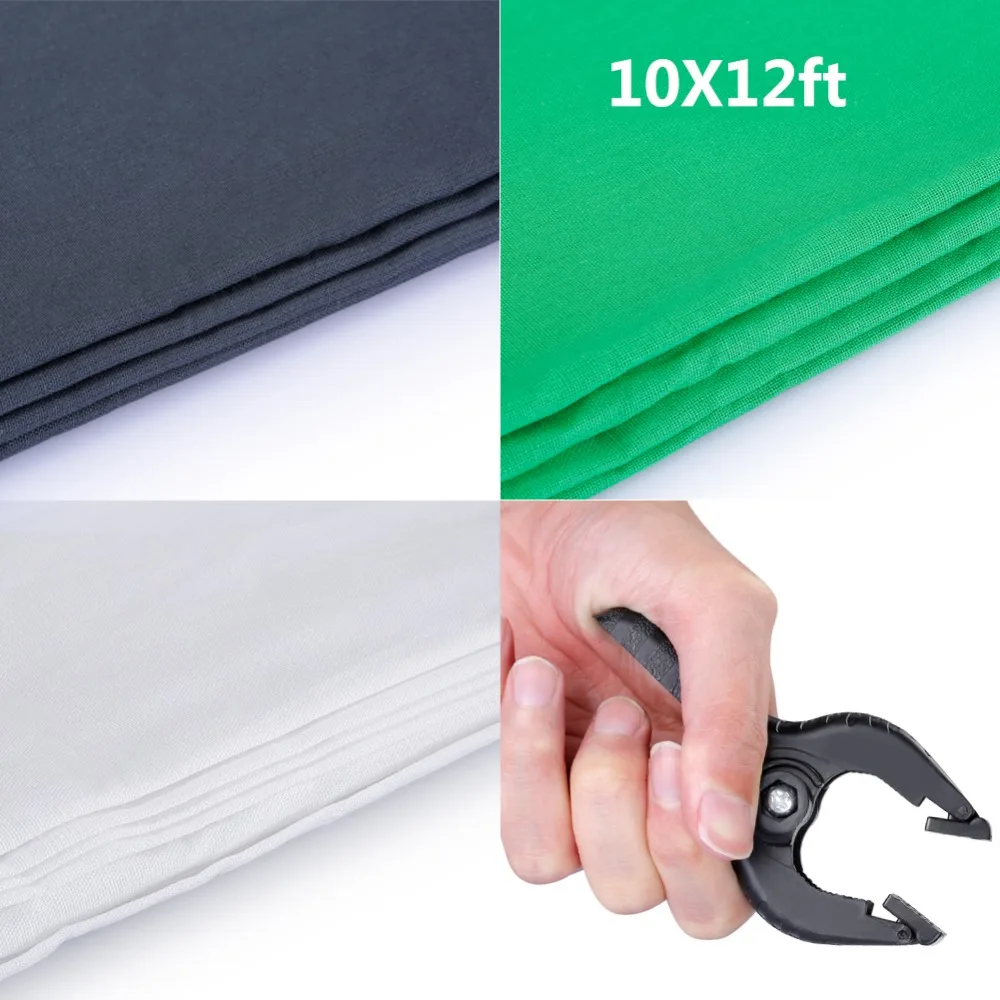 (1)3x3,6 M/10x12 футов Musline фон (цвета: черный, белый и зеленый) +(6) зажимные зажимы