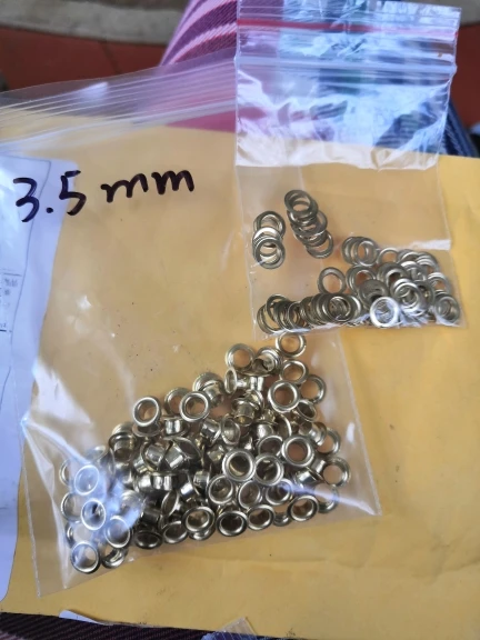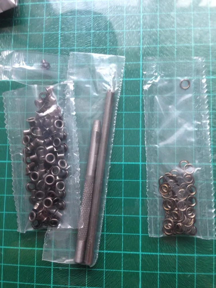 При установке не выходит сделать красивую ромашку, одна сторона люверса остается целой, примерно треть столбика, огорчило, я взяла размер в 3мм под размер люверсов, нигде не написано как правильно выбирать это соотношение, предполагаю, что может взяв больший размер, результат бы порадовал. Попробую взять на 5мм
