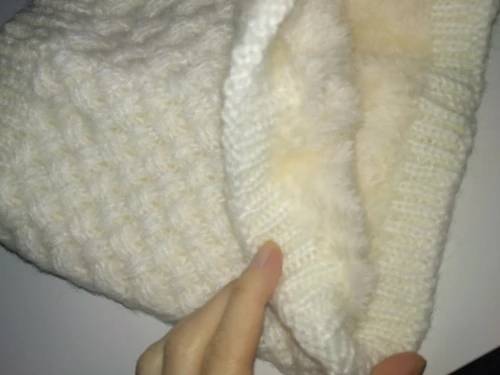 Отличное качество, мягкий. Можно натянуть на голову и стянуть один край - получается отличная теплая шапка! Внутри тонкий мех.
