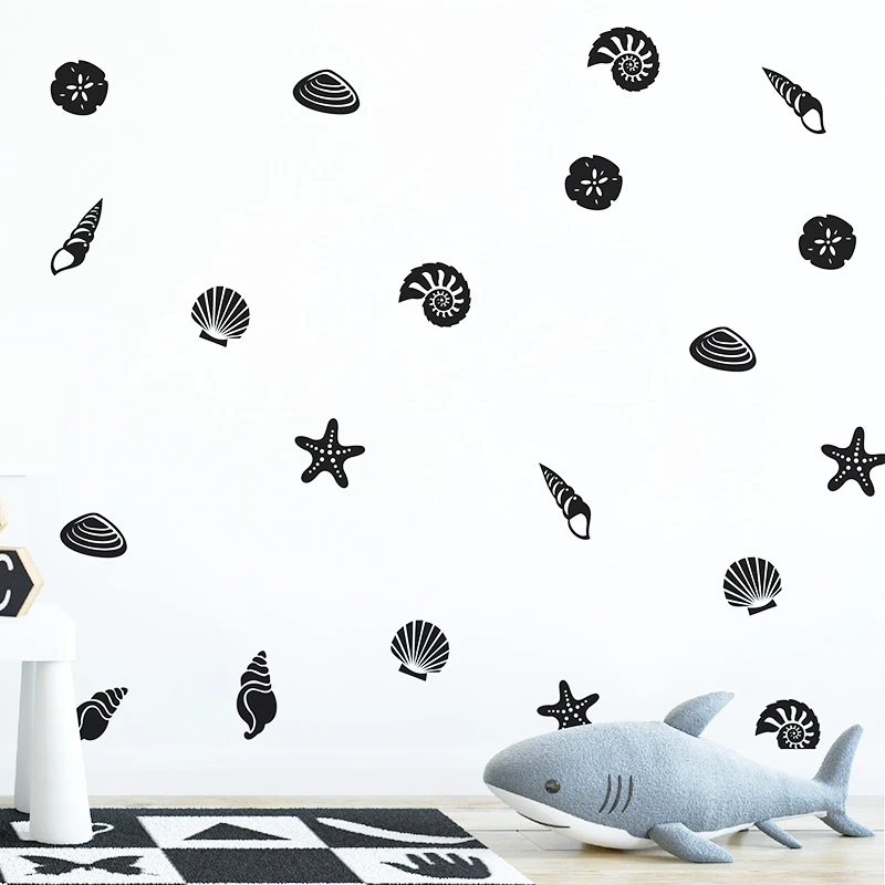 Набор из 21 пляжных настенных наклеек с ракушками, Настенный декор для пляжной тематики, виниловый стикер с персонажами из мультфильмов DIY, домашний декор для детской росписи, художественные наклейки