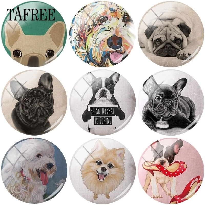 TAFREE Рисунок собаки 25 мм стекло Cabohcon Французский бульдог кок...