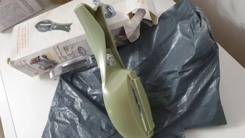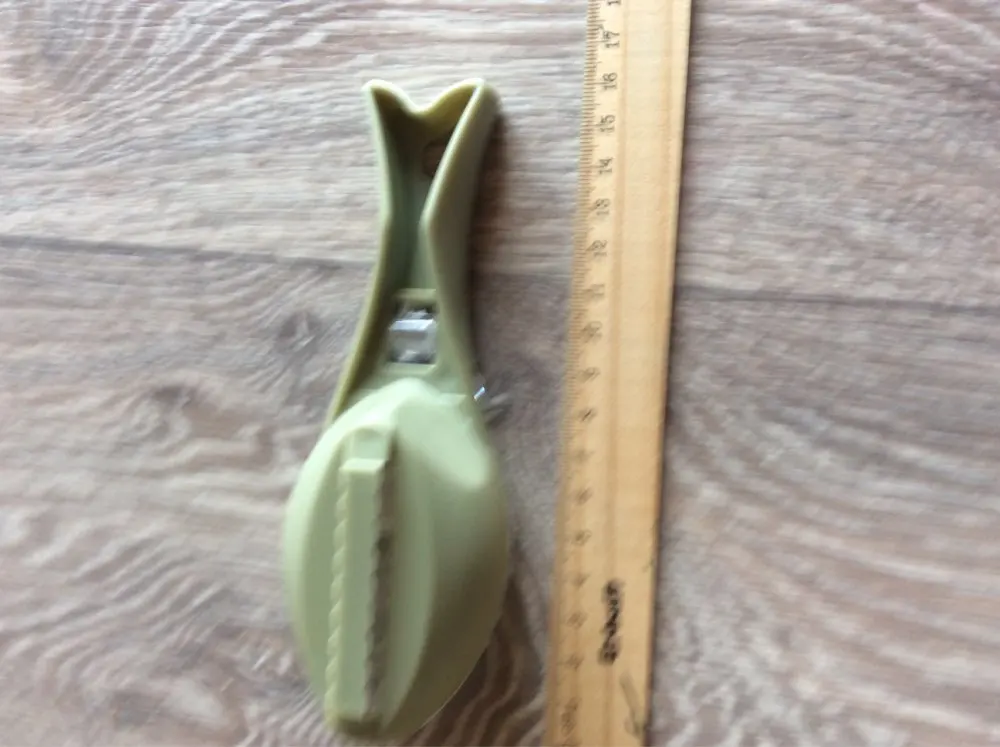 Товар пришел довольно быстро. Думала лезвие будет металлическим, оказалось пластмассовым. Представляла размером побольше. Чистит неплохо, но часть шелухи все равно мимо. Может у нас только, конечно.
