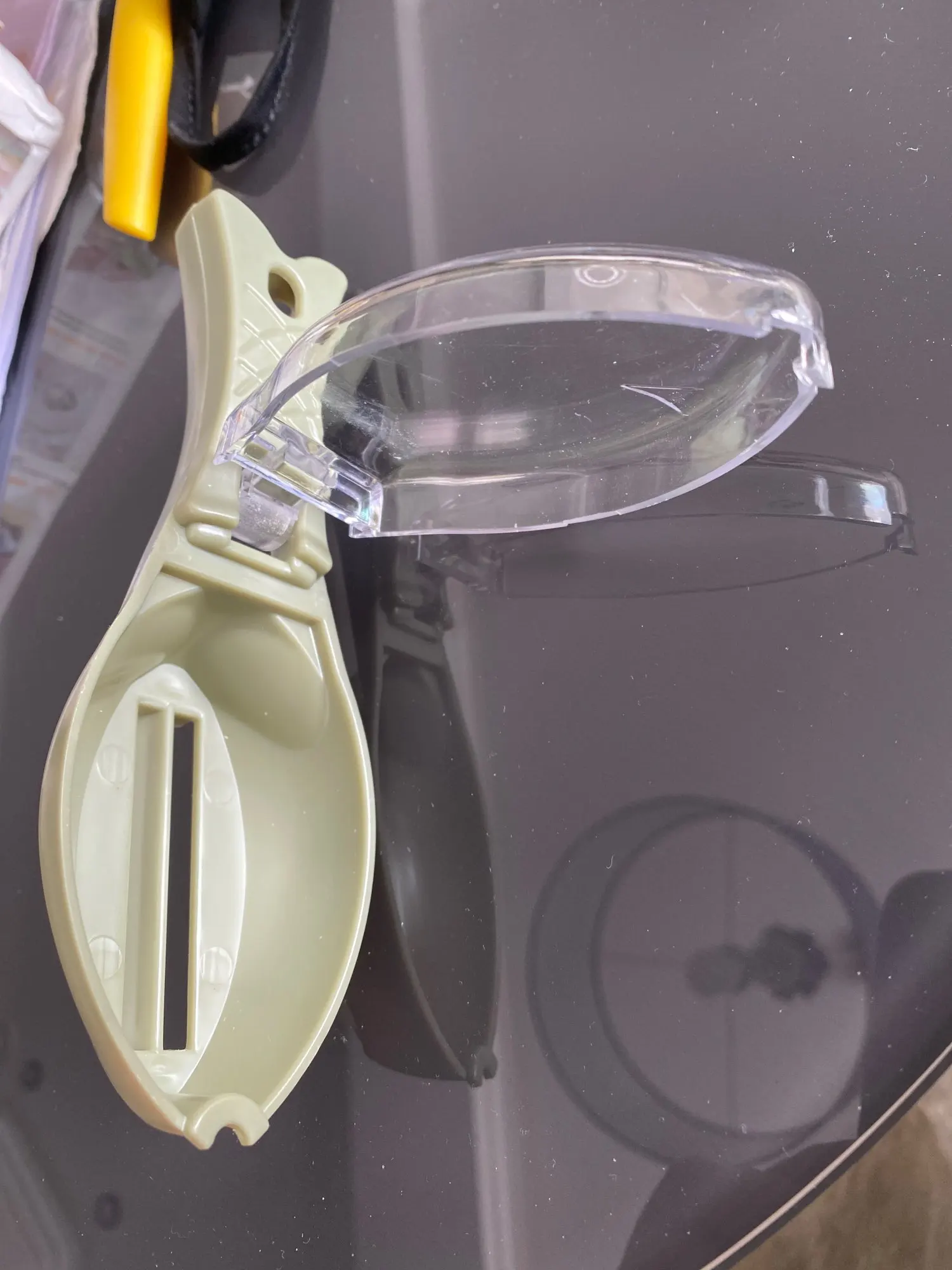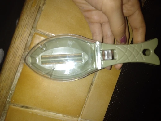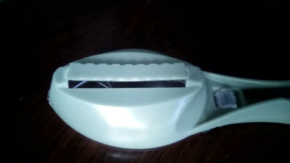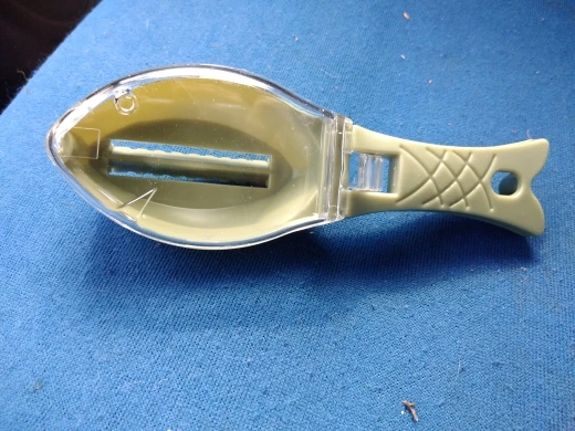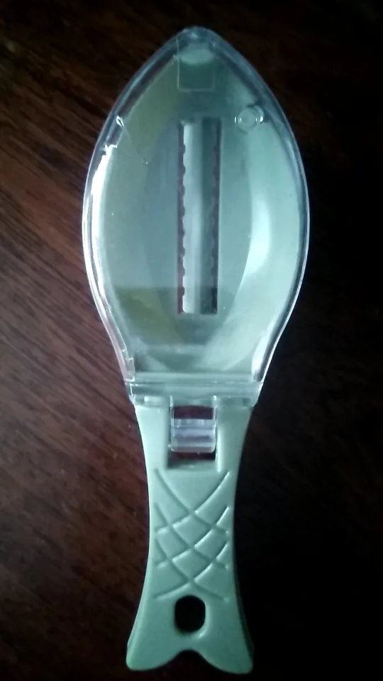 Полагал, что рабочая кромка металлическая, а она пластиковая, является частью корпуса, да ещё и тупая. В деле эту штуковину ещё не пробовал, но сомневаюсь, что что-то путное. Мелкую чешую - точно не возьмёт. Ладно, поживём - увидим.