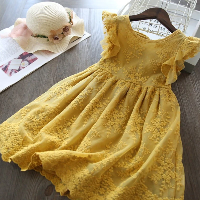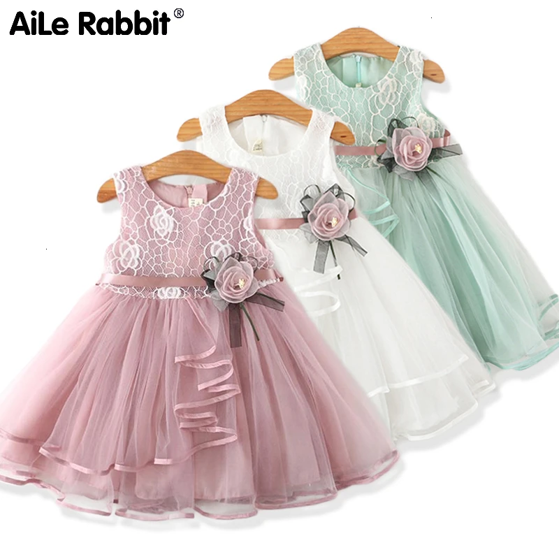 Летнее платье для девочек, кружевное платье с цветами для девочек, ...