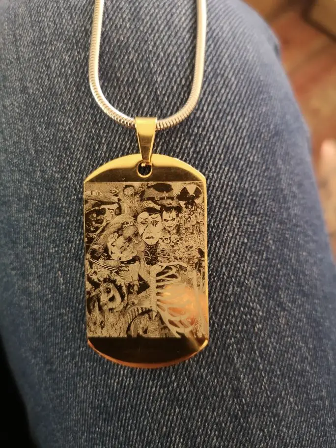 Блестящая гравировка Lazer. Люблю ожерелье. Стоит своих денег.