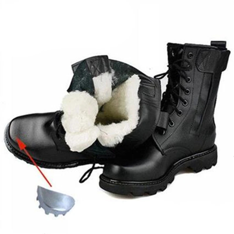 Мужские зимние защитные ботинки со стальным носком, кожаные военные ботинки, русские теплые мужские зимние ботинки из натуральной шерсти, мотоциклетные ботинки