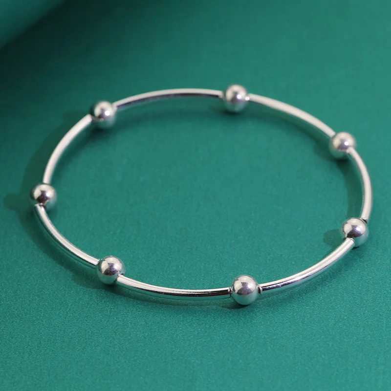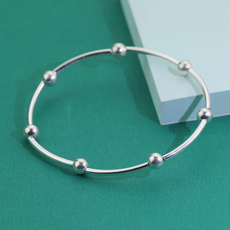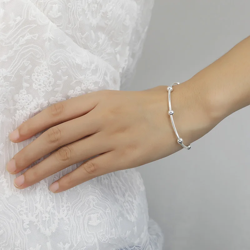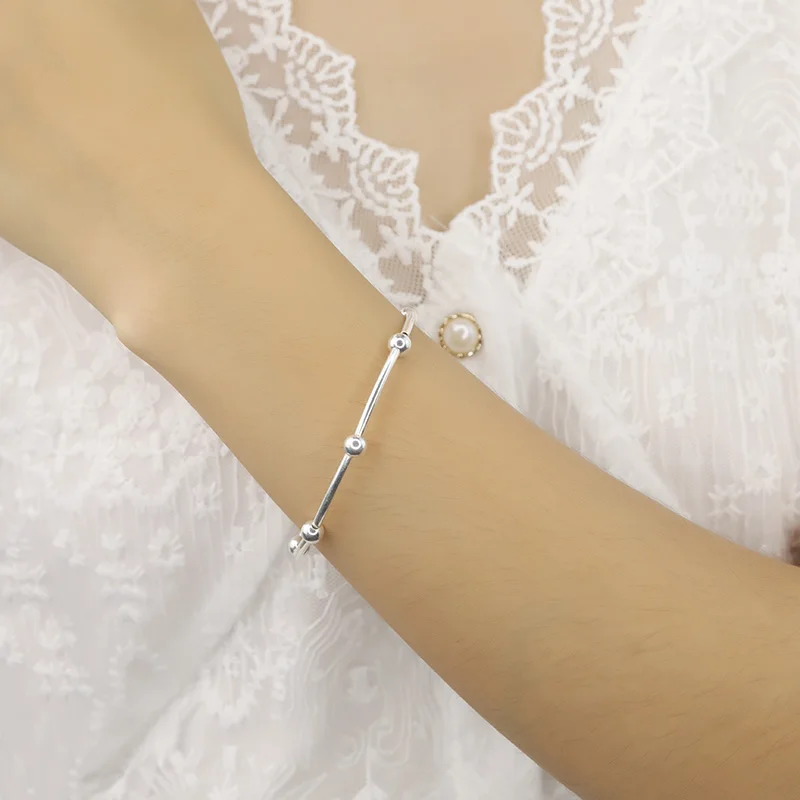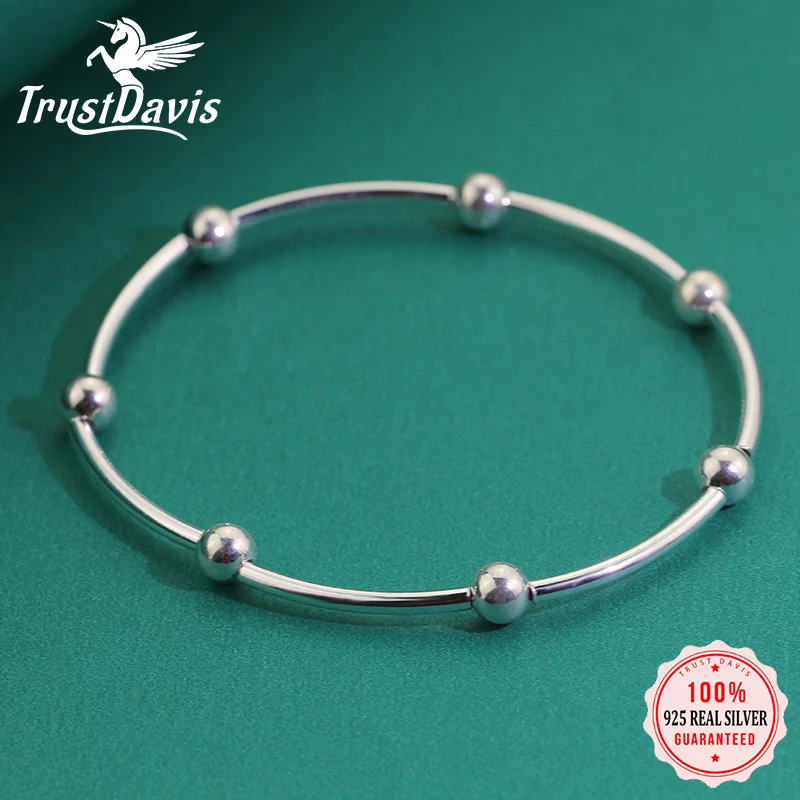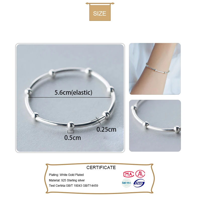 Браслет женский из серебра 100% пробы, с бусинами, эластичный, DS1406