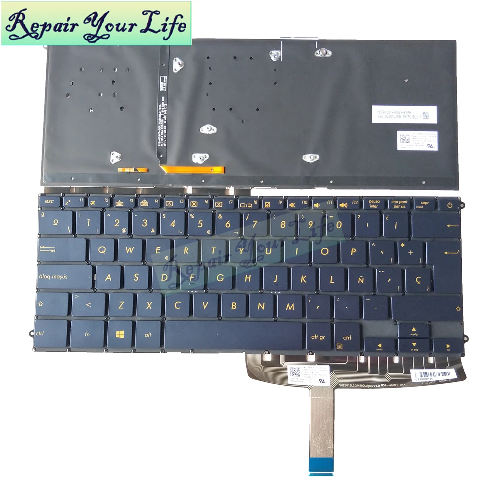 Клавиатура для ноутбука с подсветкой UX490, испанская, для ASUS ZenBook 3 Deluxe UX490 UX490CA UX490UA Spain SP blue kb, желтые клавиши SN2561BL2