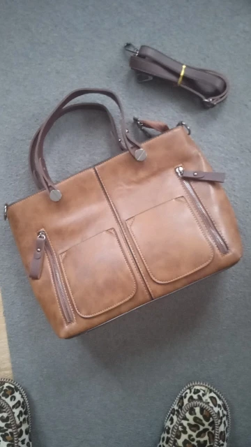 Сумка вместительная, карманы не обманки. Думала, будет из другого материала. Присутствует запах, выветривала на балконе. Имеется длинная ручка в комплекте