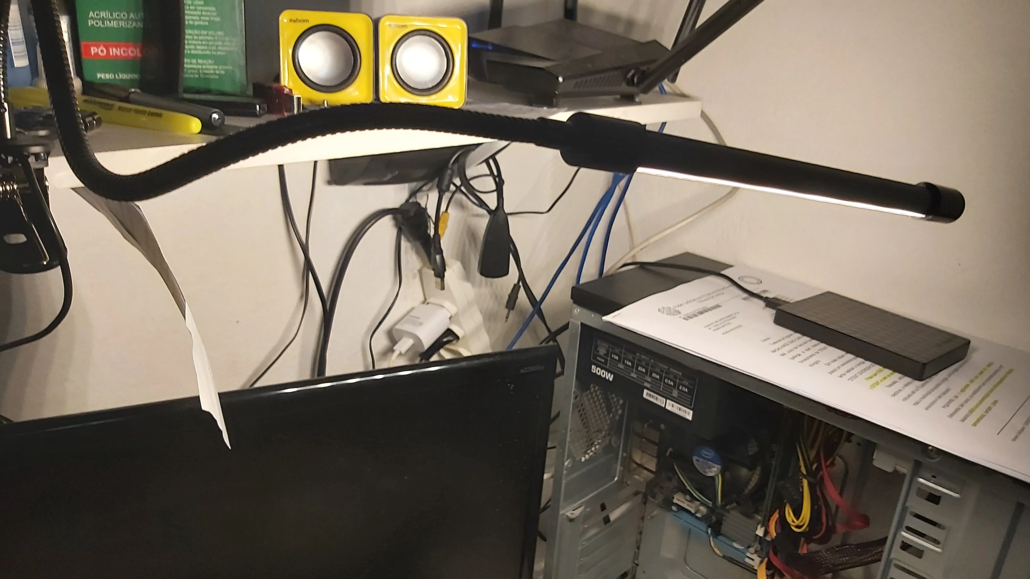 Лампа очень клёвая! Светит отлично! Доехала в Украину за 20 дней. Блока питания в комплекте нет. Есть регулировка яркости и переключение между холодным, нейтральным и теплым светом. Фото сделано в полной темноте без вспышки на полной яркости лампы.