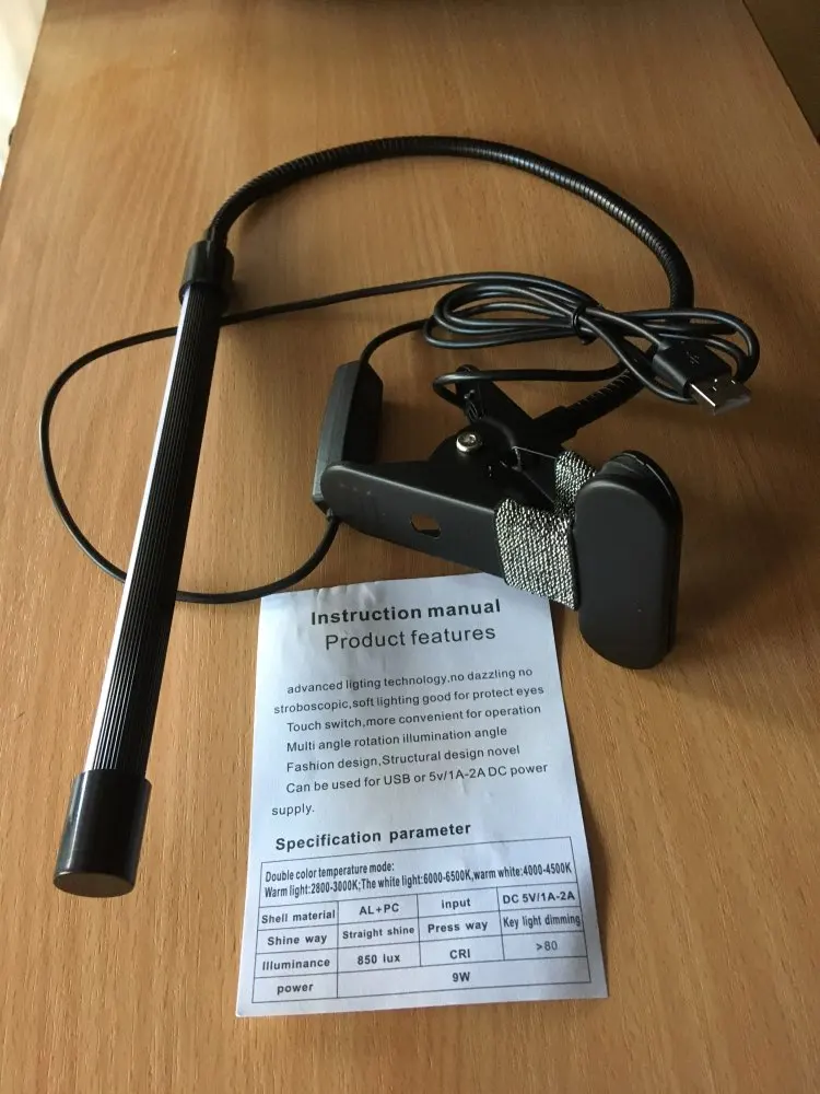 Заказ пришёл за месяц до Москвы. Светильник хороший, яркий, есть 3 режима и разные цвета ламп. К столу крепится, зажим хороший. Продавца рекомендую.