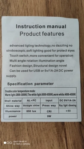 Хорошая лампа, работает без нареканий, три режима света: желтый, белый, светло-голубой, также меняется яркость, где-то около 7 щелчков, лампа качественная, крепление хорошее, сама посылка пришла немного помятой, но внутри были специальные чехлы чтобы не поцарапать стойку и лампу, также была приклеена дополнительная пленка к светодиодам, короче оценка 5/5.