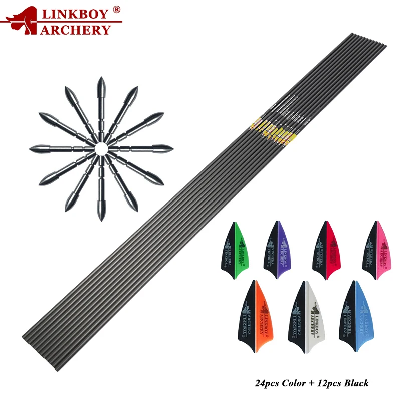 Linkboy карбоновые Стрелы Вал ID 1,75 мм дюйма Пластиковые лопасти 80 зерновых точек аксессуары сделай сам для рекурсивного лука стрельбы из лука охоты 12 шт.