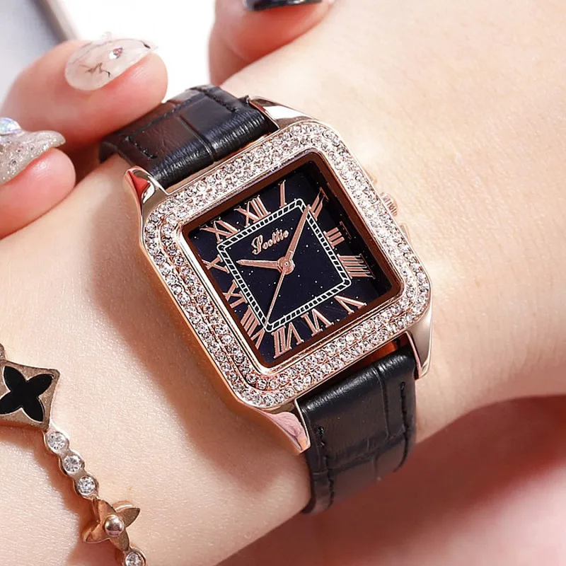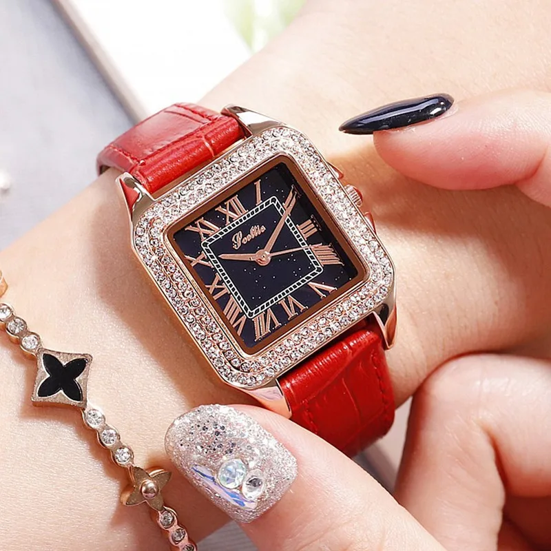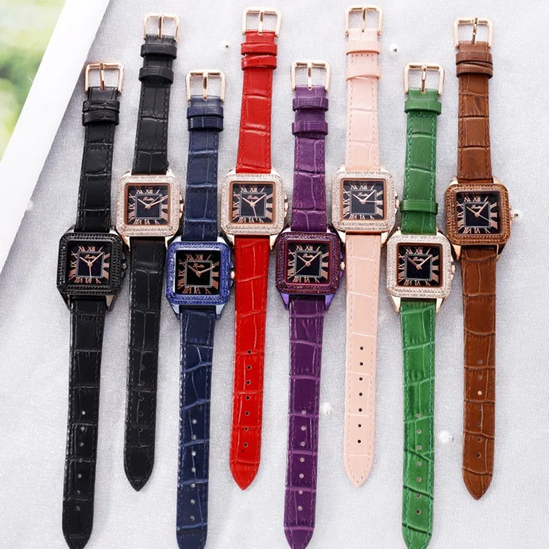 Женские кварцевые часы с квадратным браслетом, на кожаном ремешке