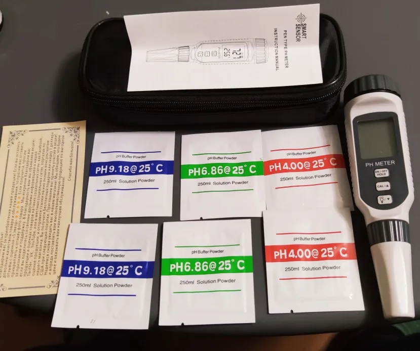 Товар соответствует описанию. Хорошо упакован в фирменную коробку. PH метр и калибровочный порошок находится в чехле. Очень удобно. Доставка из России. 6 дней в Краснодар.