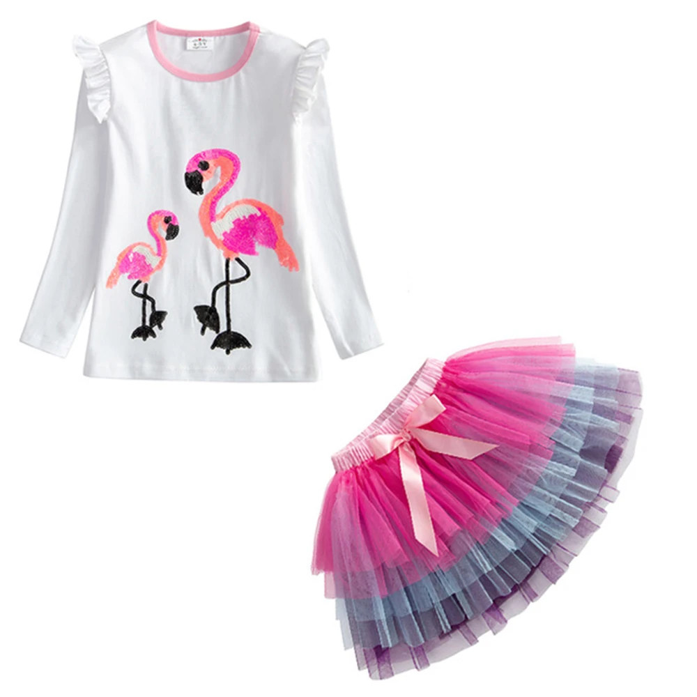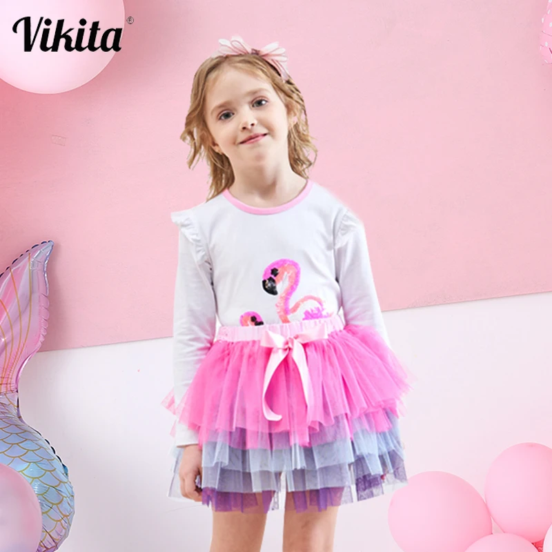 VIKITAкомплекты одежды для девочек футболка с длинными рукавами и рисунком Фламинго + платье-пачка комплект детской одежды из 2 предметов RESETLH4591