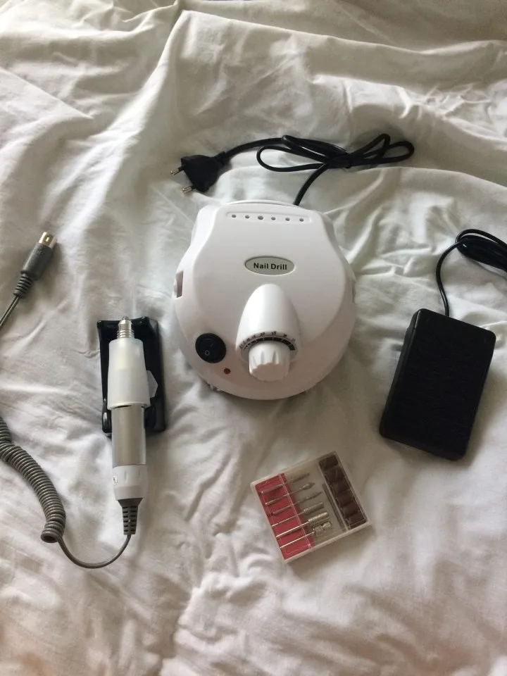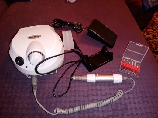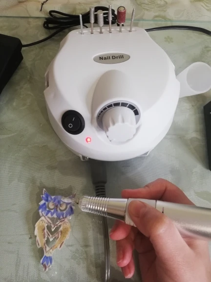 Пришло очень быстро!! 11.11 заказала, 15 написали об удобном времени, 16.11 уже принес курьер домой! Все как и обещал продавец. Аппарат лёгкий, не сильно шумный, все работает, лично я чувствую небольшую вибрацию от ручки, не критично, но все же она есть. Фрезы беда, сразу заказала получше, хотя пара фрез может обработать кожу вокруг ногтя и кутикулу, птеригий. Мне, как тому, кто делает маникюр только себе и максимум маме/подруге - прекрасно! Аппарат явно выручает, потому что устала снимать пилками, очень долго, нудно и быстро пилки улетают. Когда придут фрезы оценю машинку в полной мере, но уже очень даже довольна!!! Для начинающих мастеров и для себя - советую, неплохой старт и обучения пользования таким агрегатом, уж тем более за такие деньги!