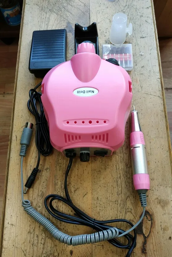 Машинку доставили курьером сдек, правда доставка с РФ была больше месяца. Упакована как писали ранее в отзывах. Докупила две фрезы в магазине: пламя и шар для обработки кутикулы. Гель лак снимала фрезой,которая была в комплекте. Для домашнего пользования машинка хорошая.