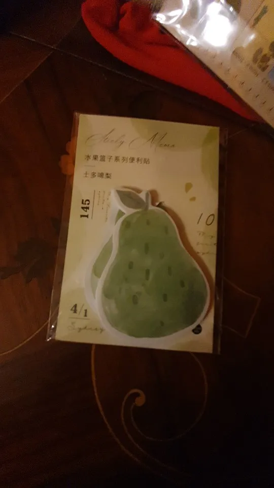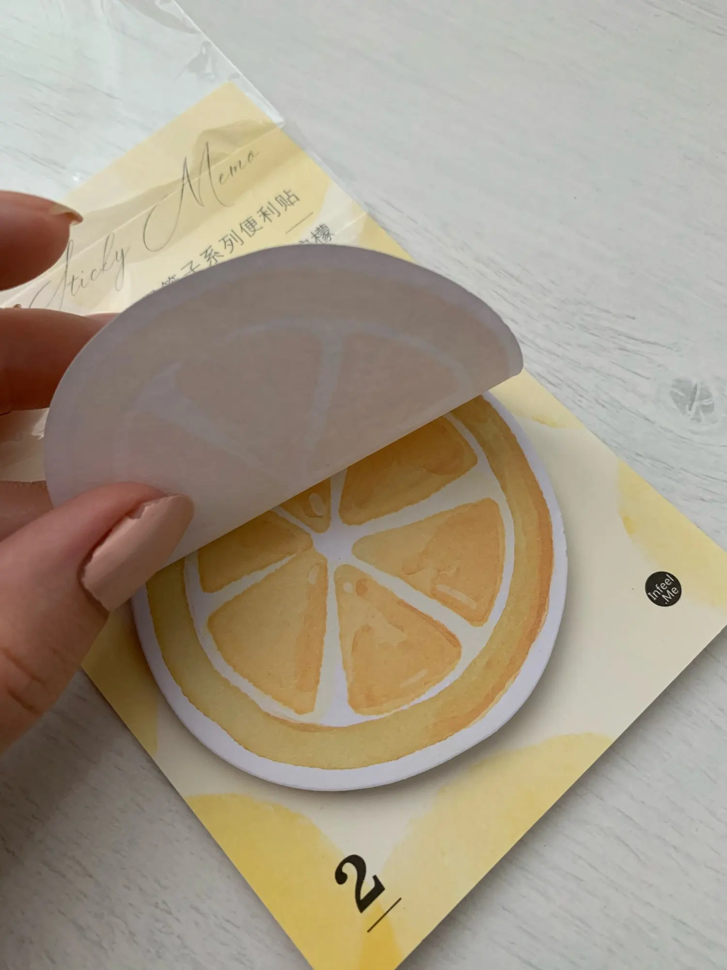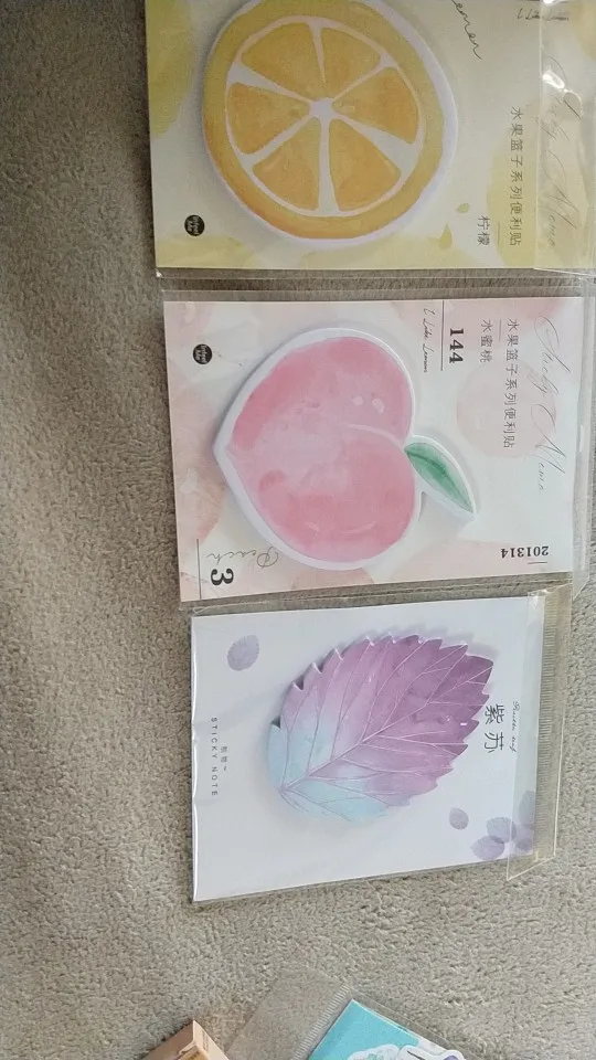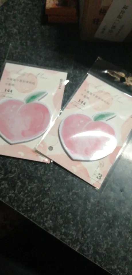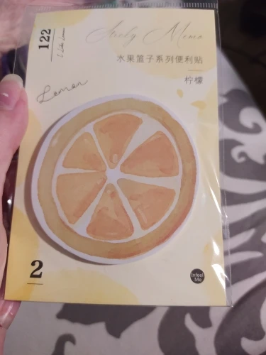 This product looks exactly like in photos. But the thing that makes me angry is the fact that the sticky part is only in the upper part of the slice. It wouldn't stay sticked on the paper due to the small surface of stickiness.