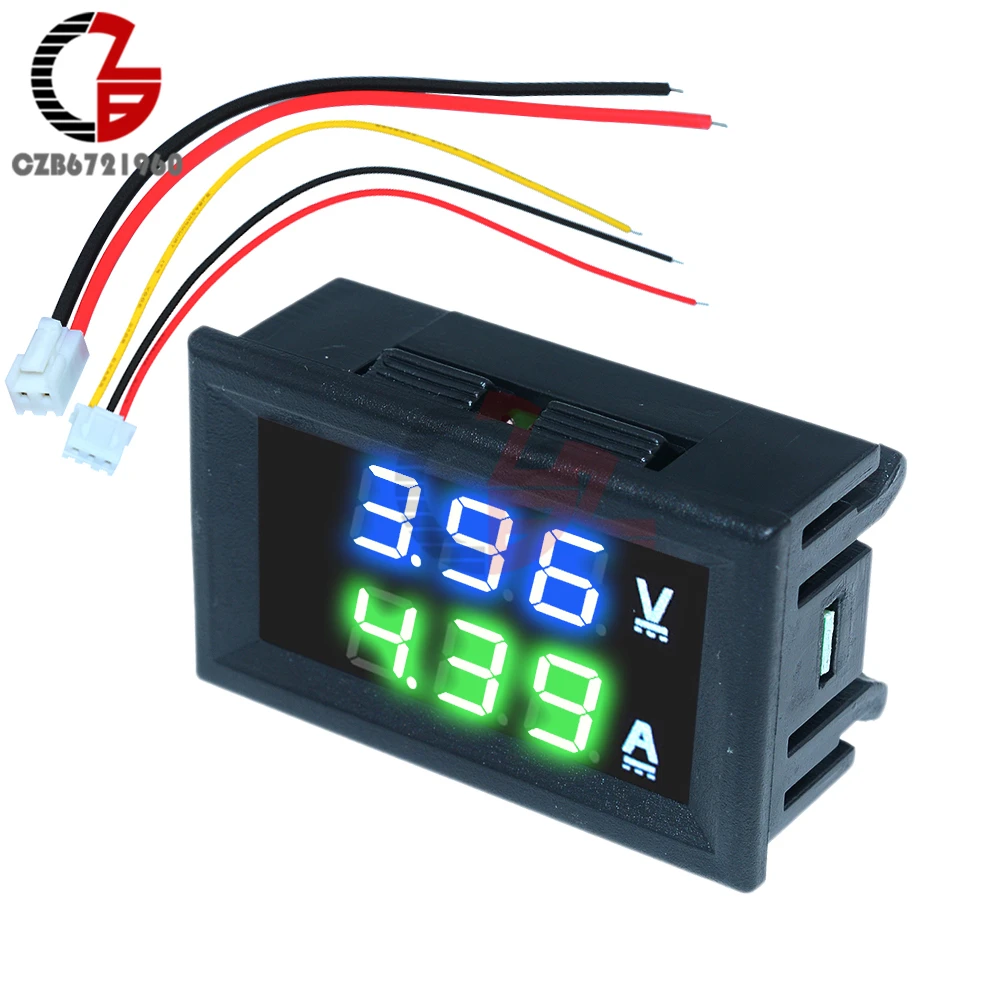 Постоянный ток 100 в, 10 А, цифровой вольтметр, амперметр, автомобильный, мотоциклетный измеритель напряжения и тока, усилитель, тестер, красный, зеленый, синий, двойной дисплей