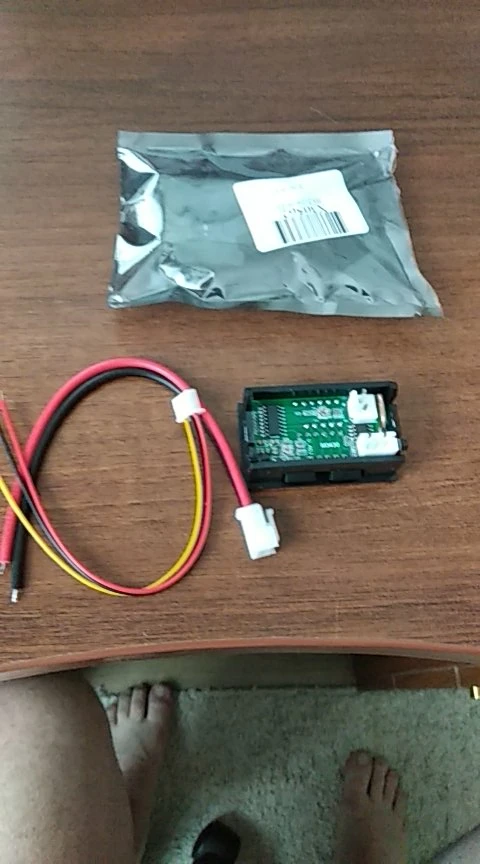 Подключите желтые и красные тонкие провода к боковой стороне источника питания, оба в одну точку, оставьте черный подвешивание. (За исключением того, что вы предоставляете отдельный источник питания для счетчика, затем подключите желтый только к измеренному +) Толстые красные/черные провода переходят в зазор сбоку (так после нагрузки). Таким образом, он на самом деле измеряет напряжение между желтым и толстым черным, а не между тонкими проводами!